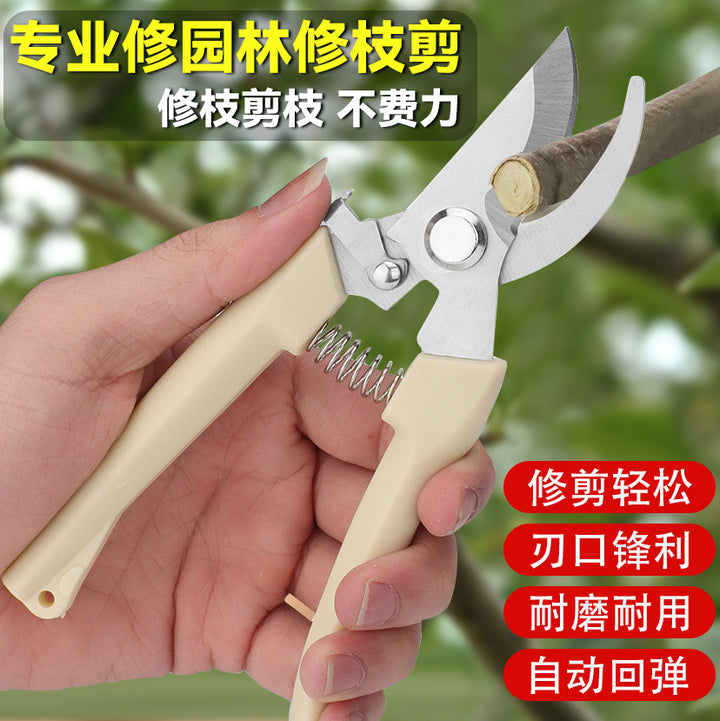 Garden pruning shears, fruit picking shears, gardening stainless steel strong scissors, multi-functional springs, hand tools, Yangjiang scissors
