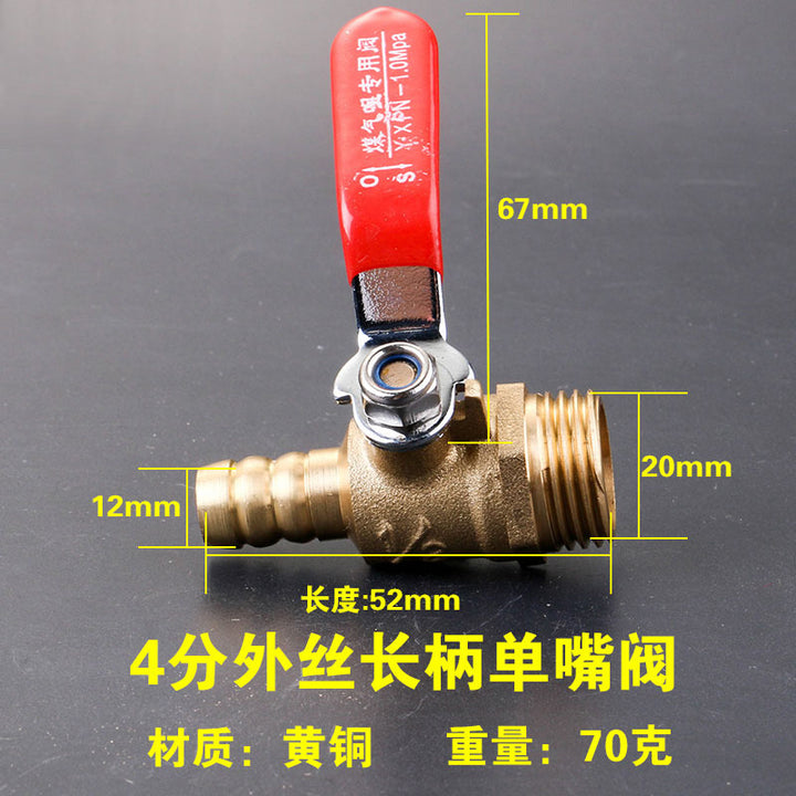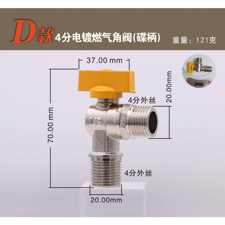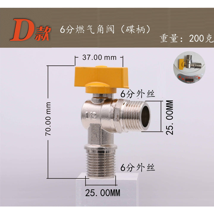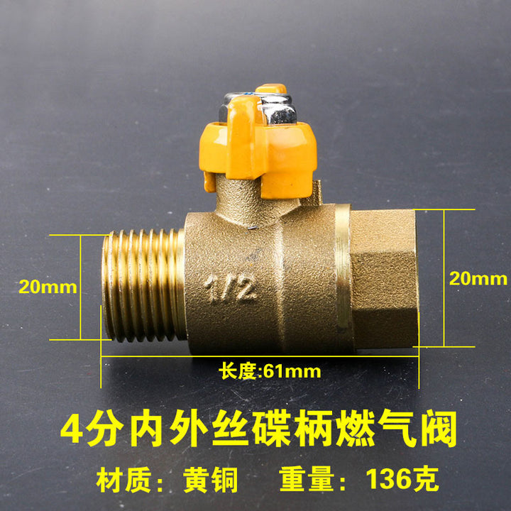 Gas pipe water heater valve, pure copper natural gas leak-proof switch, household gas stove connector accessories