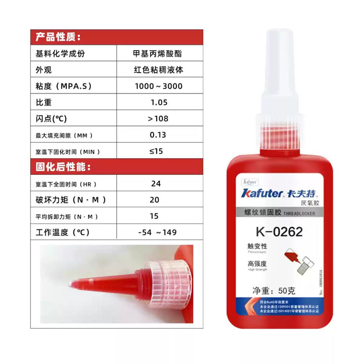 Genuine Kraft K-0262 Screw Adhesive 50G Anaerobic Adhesive 250G Thread Fastener Anti-rust, Fixed Thread Adhesive