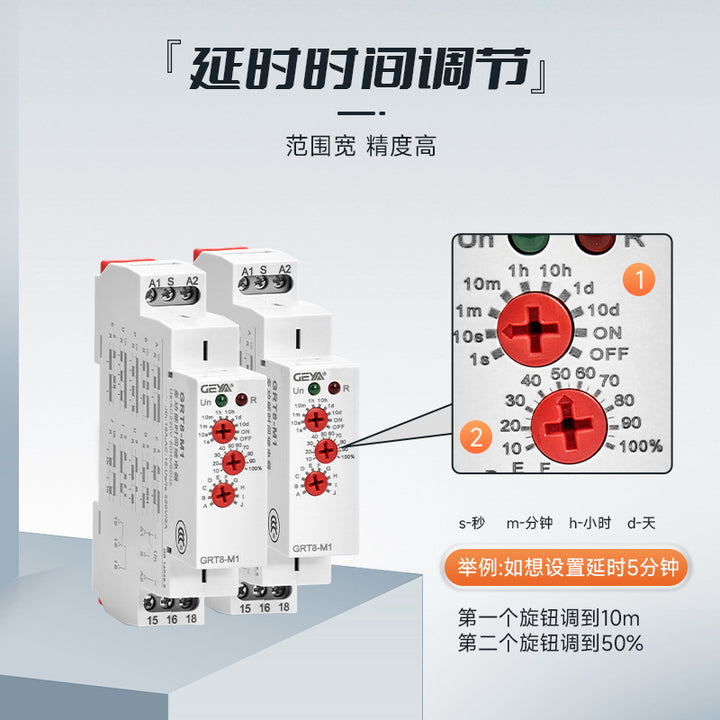 GEYA GRT8-M multi-function time relay selection trigger delay power-on and power-off DC24V controller
