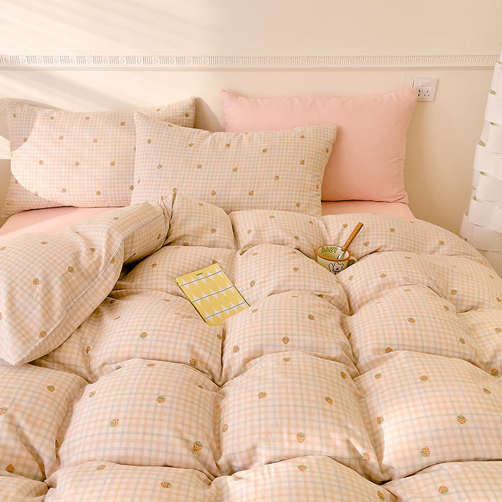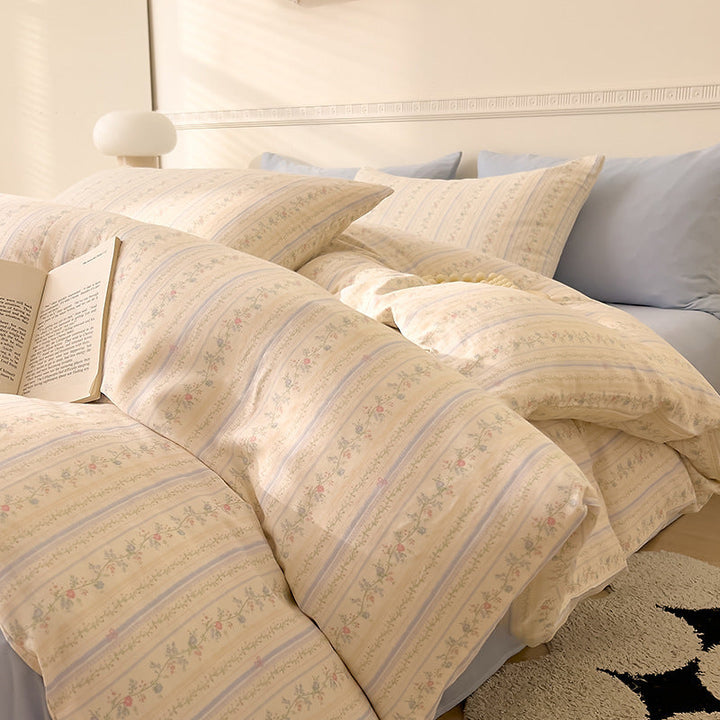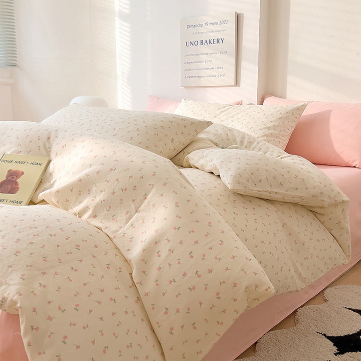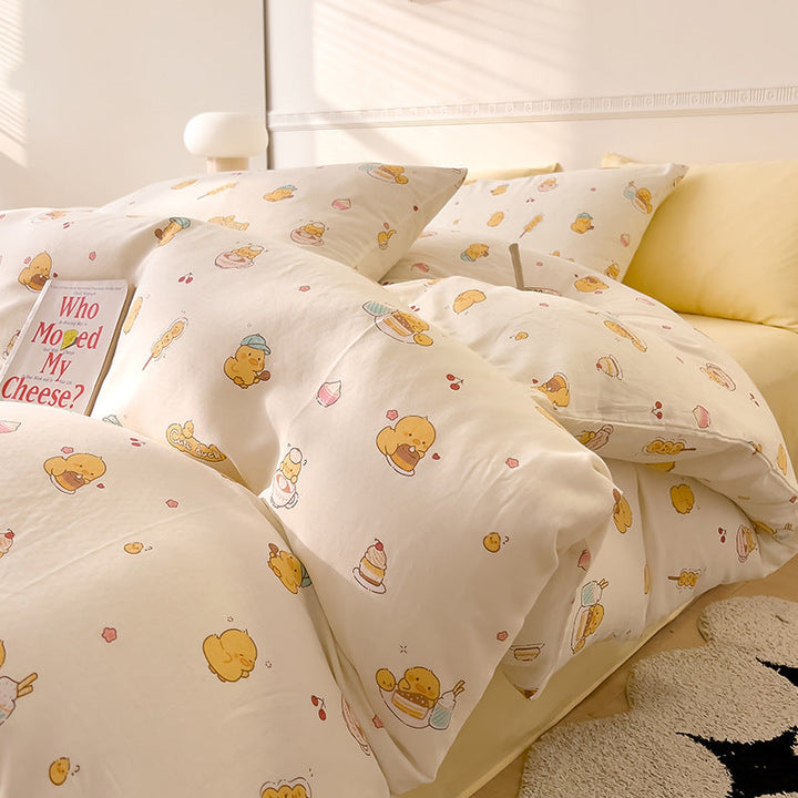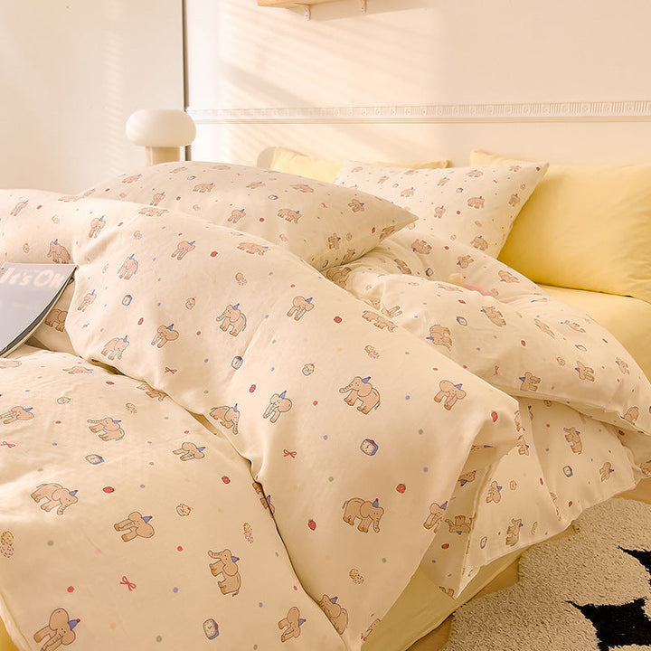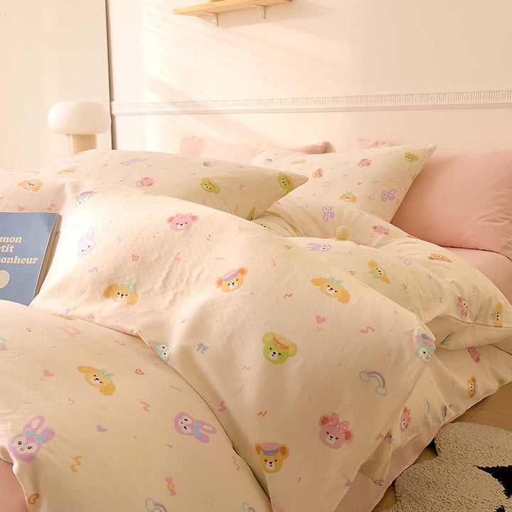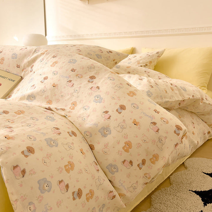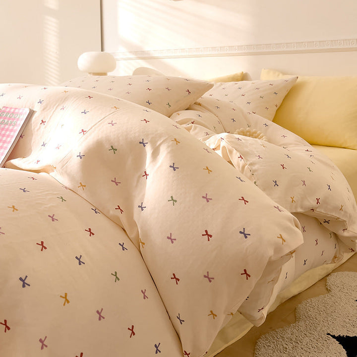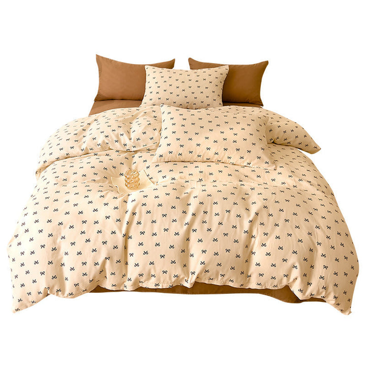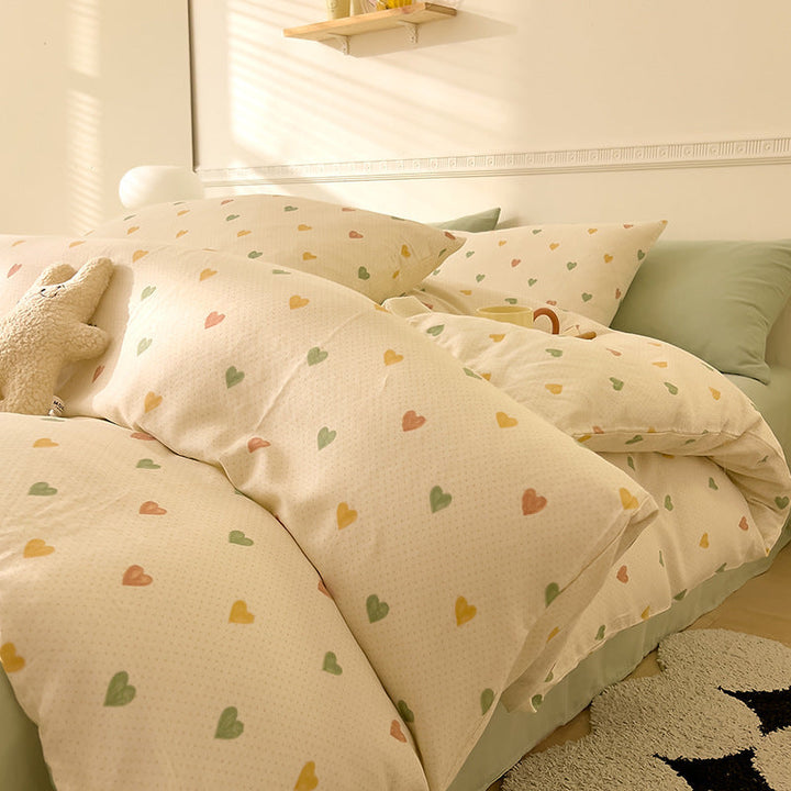 Girl heart bow pure cotton double yarn four-piece set skin-friendly and breathable children's double bed sheet quilt cover bedding