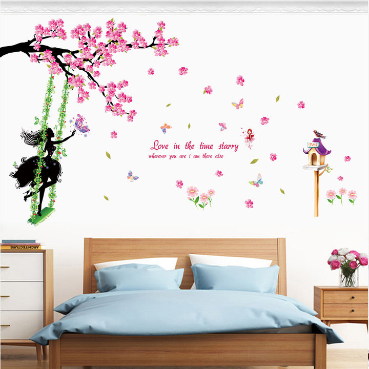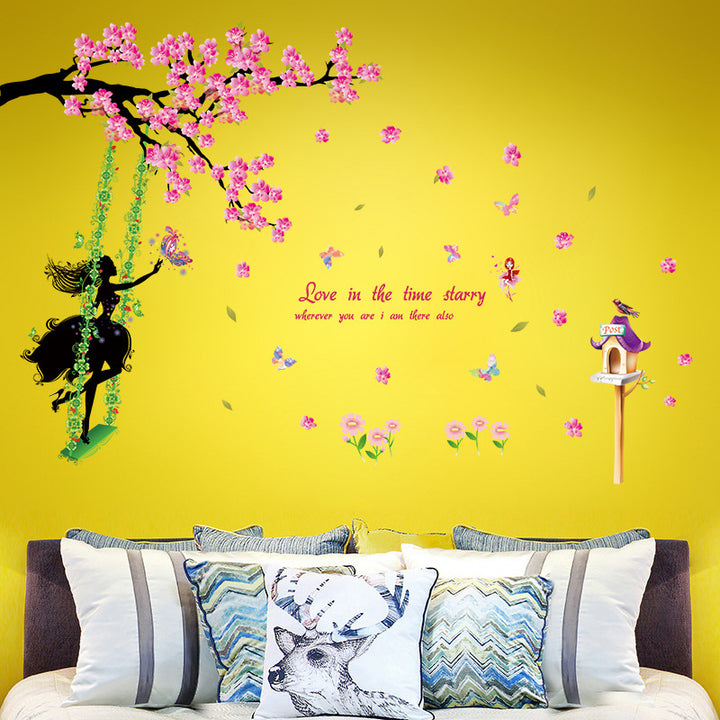 Girl on the swing love wall sticker rental house room wall beautiful decoration self-adhesive...