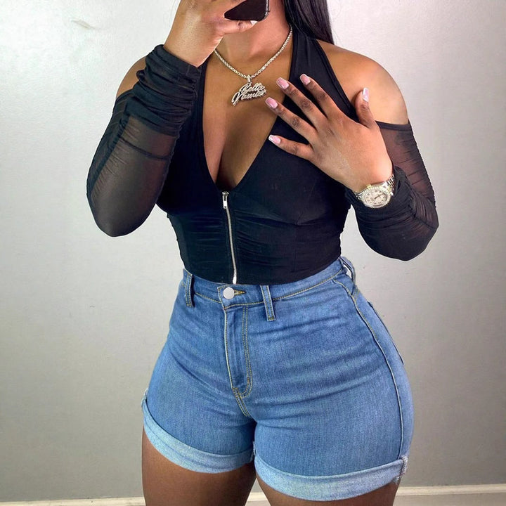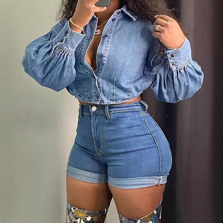 Girls High Waist Skinny Elastic Hot Pants European and American Denim Shorts Women's Trend