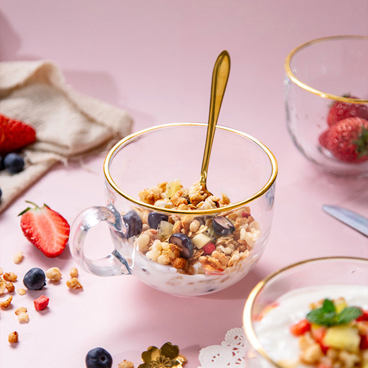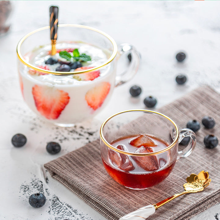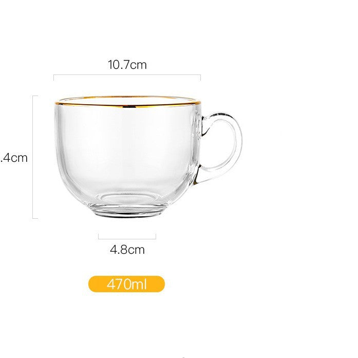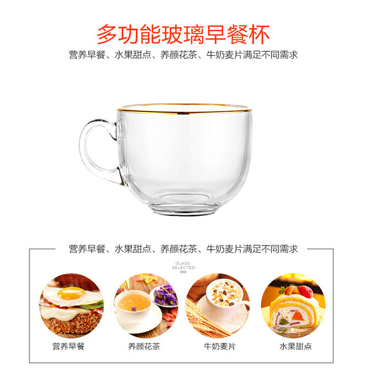 Glass breakfast cup milk oat cup household cup transparent gold-painted glass large-capacity coffee cup with handle