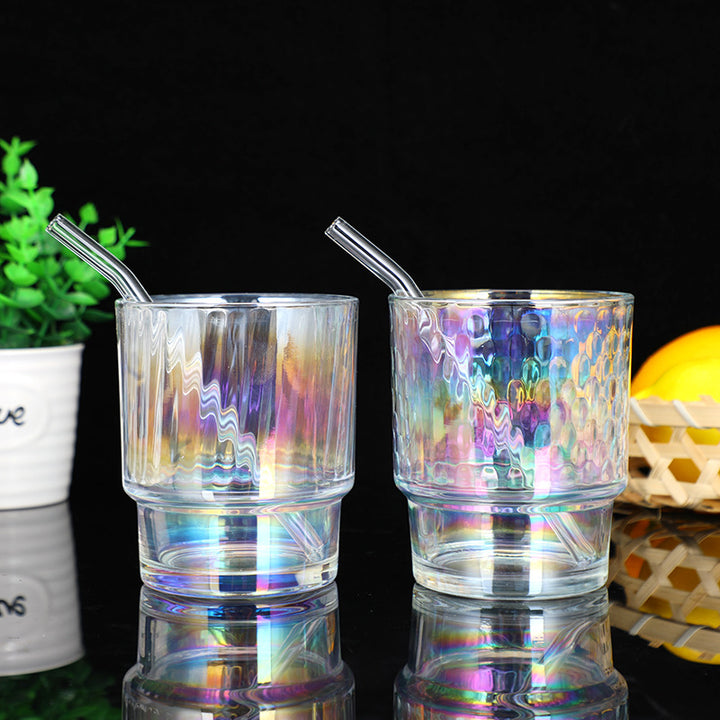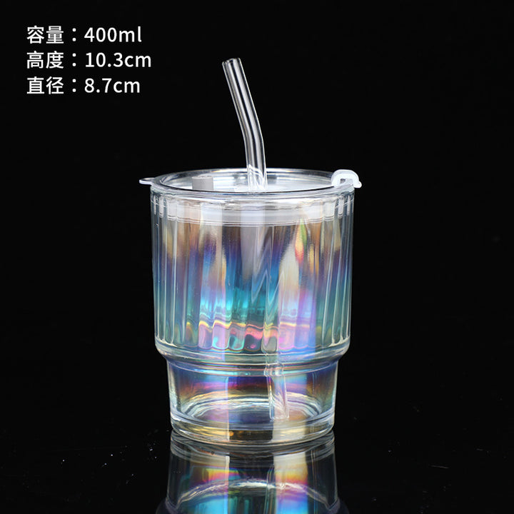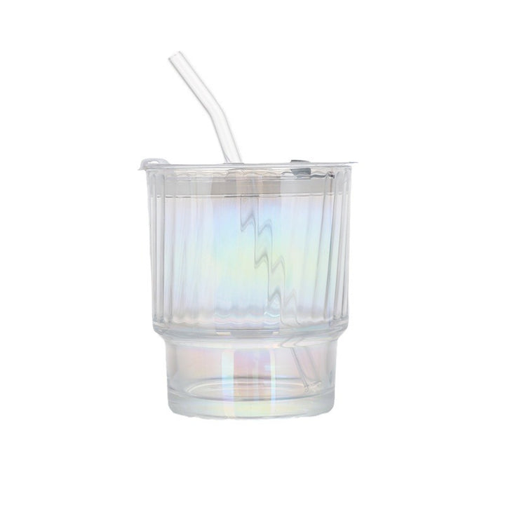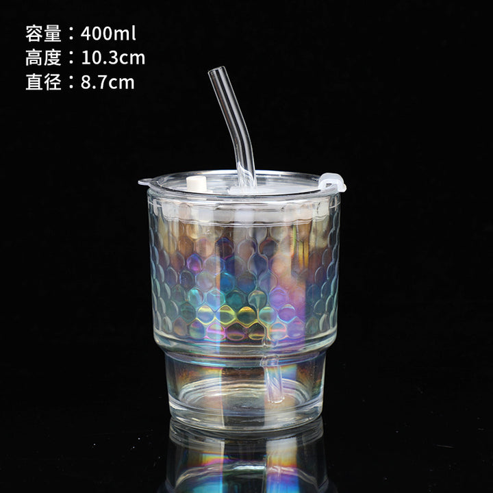 Glass colorful bamboo cup with straw coffee cup household juice beverage cup office tea cup p...