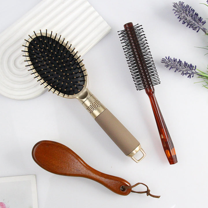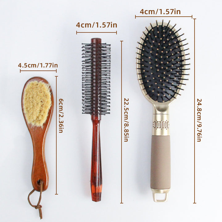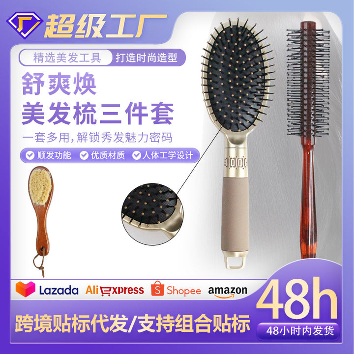 Gold large plate air cushion comb, wool beard brush, twill comb set, roller curling comb, large curved comb three-piece set.