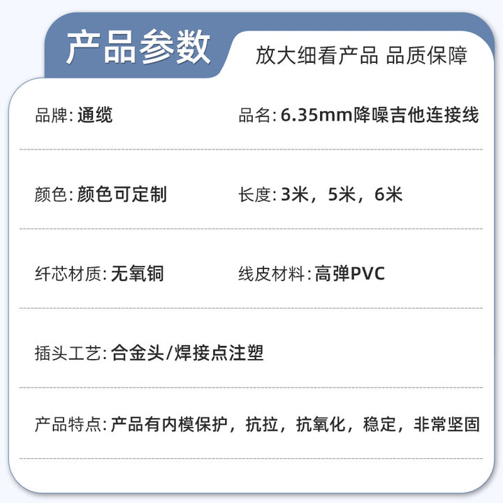 Gold-plated 6.35mm noise reduction guitar cable, sophomore audio cable 6.35TS Cable guitar cable