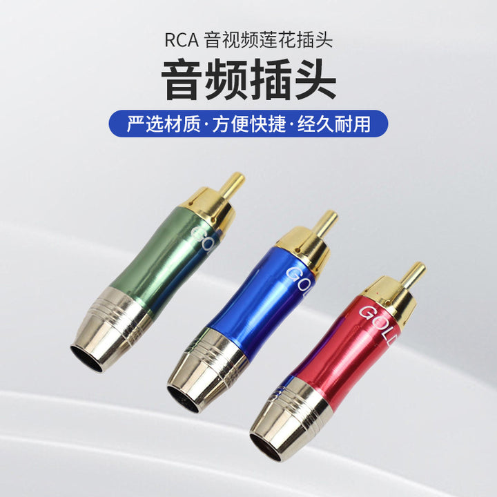 Gold plated color difference RCA male all copper audio connector AV aluminum oxide audio & video lotus plug power amplifier