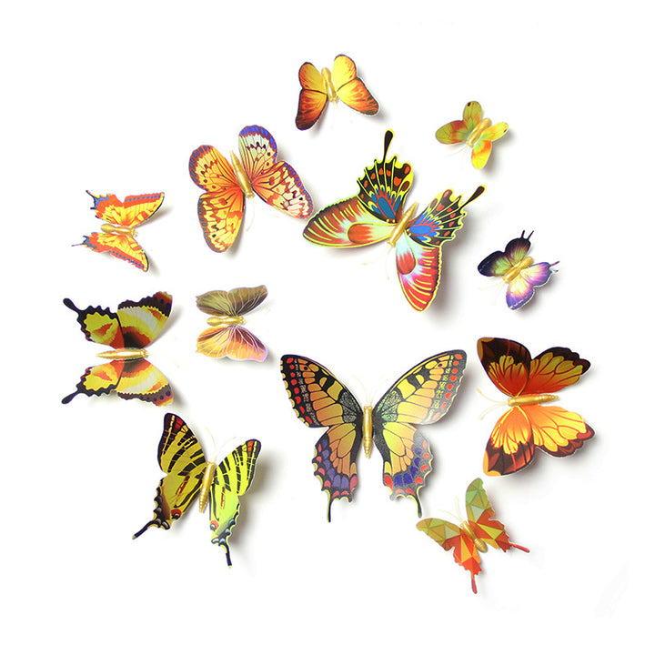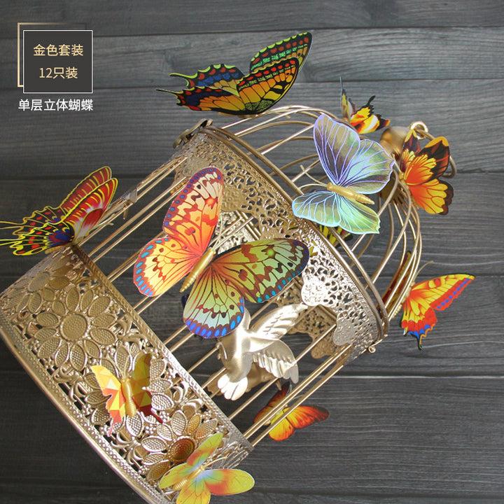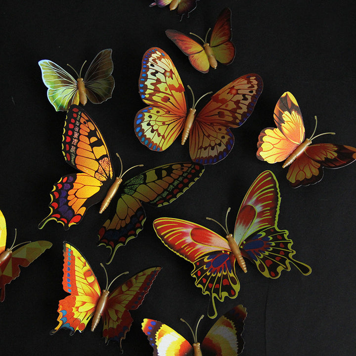 Golden butterfly wall sticker single-layer 12 pcs metal texture party decoration 3D three-dim...