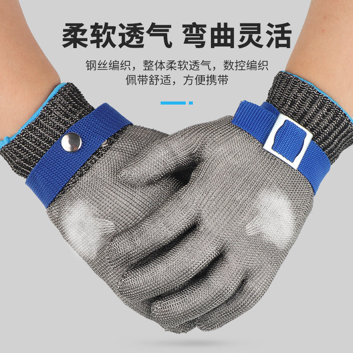 Golm grade 5 steel wire anti-cutting gloves kitchen cutting meat and killing fish stab-proof non-slip wear-resistant stainless steel GM579