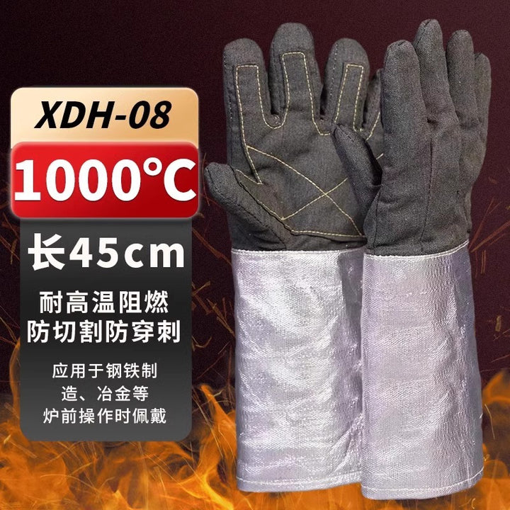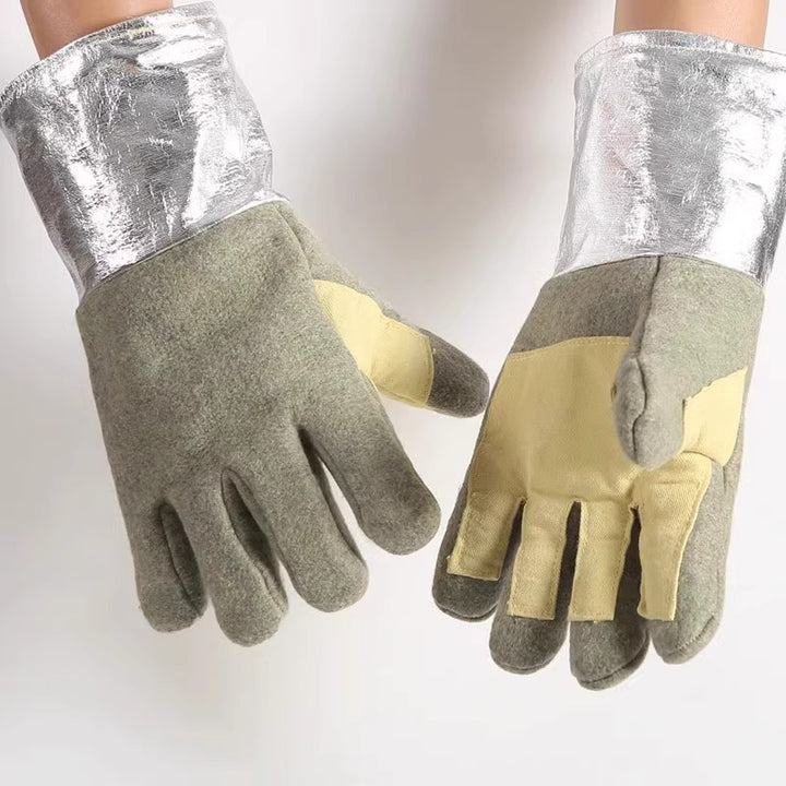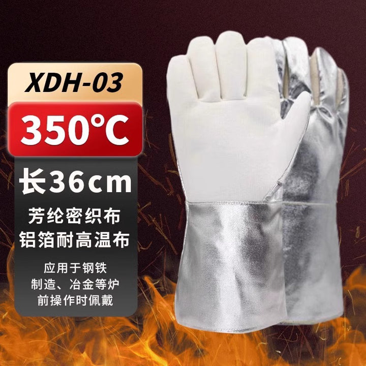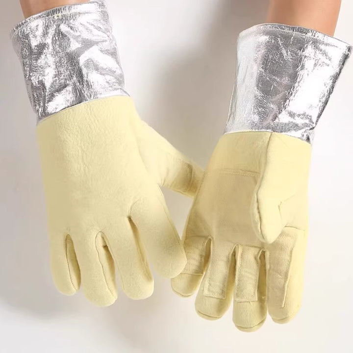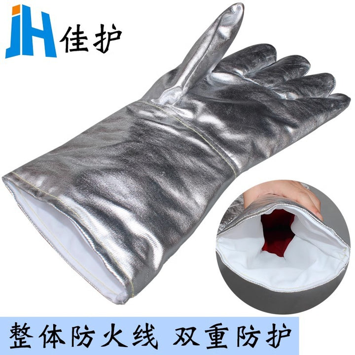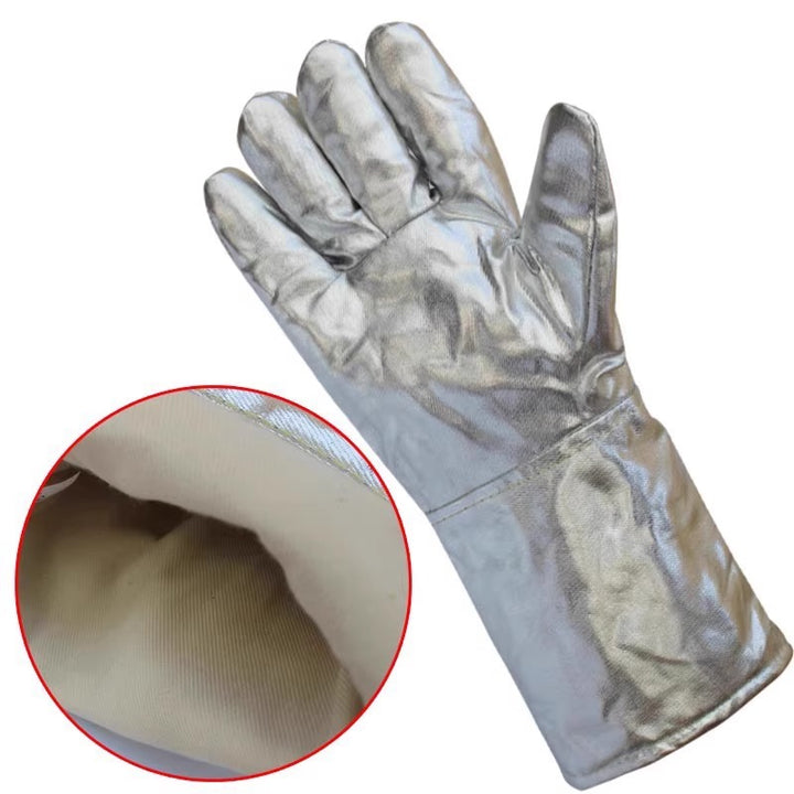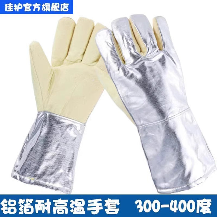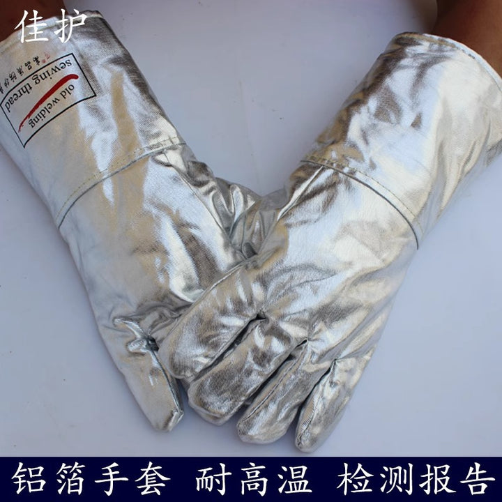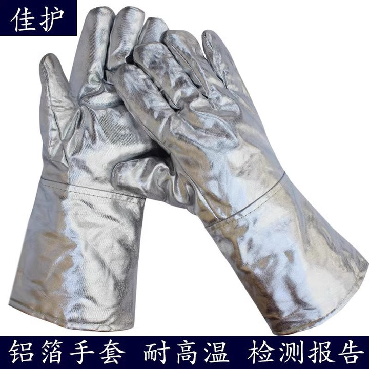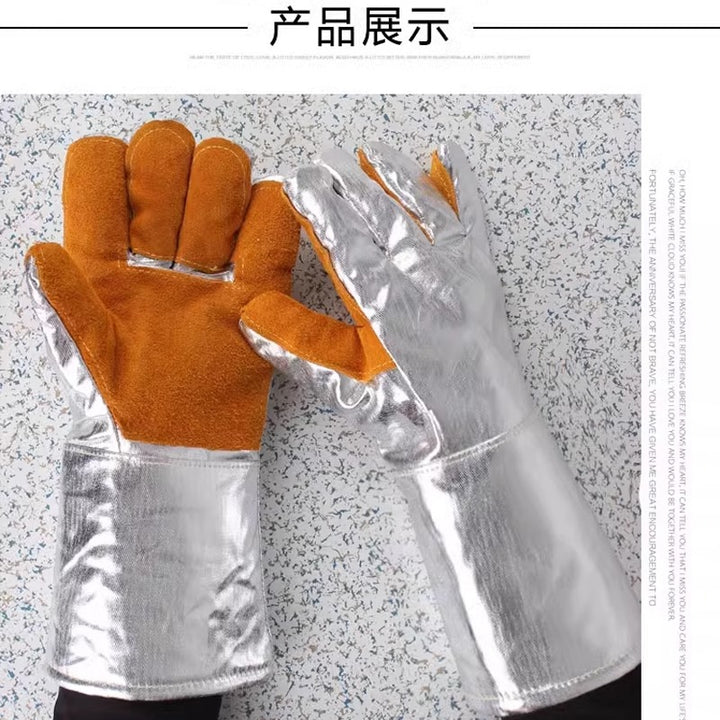 Good protection, aluminum foil gloves, radiation heat protection, thickened oven, oven gloves, high temperature melting, five-finger gloves, heat i...