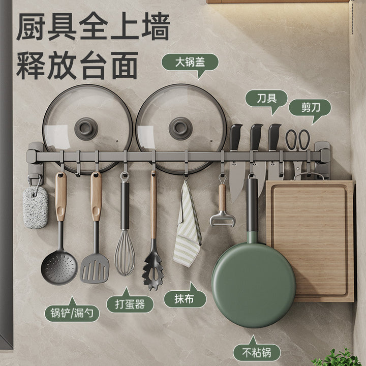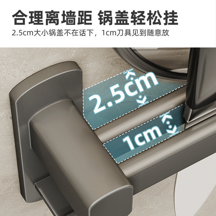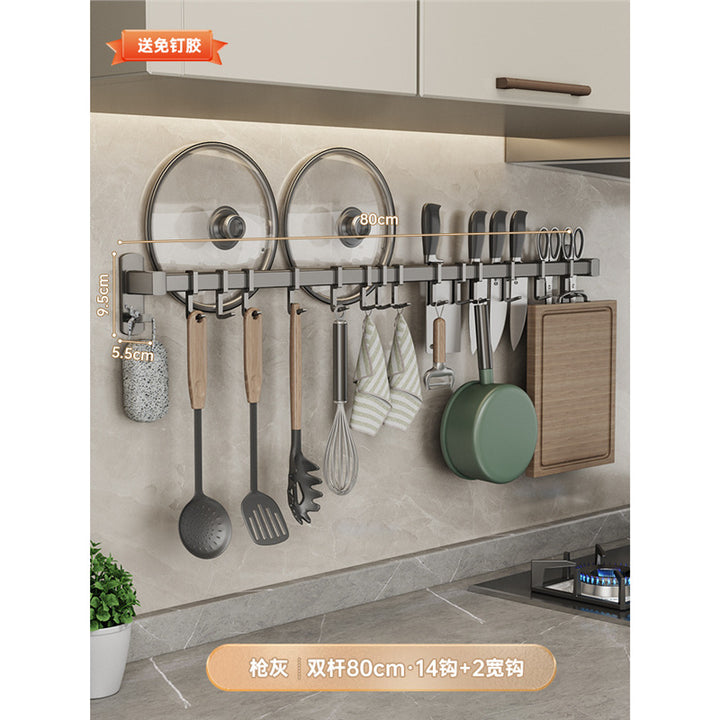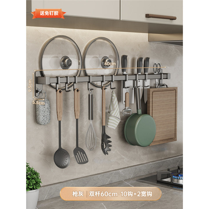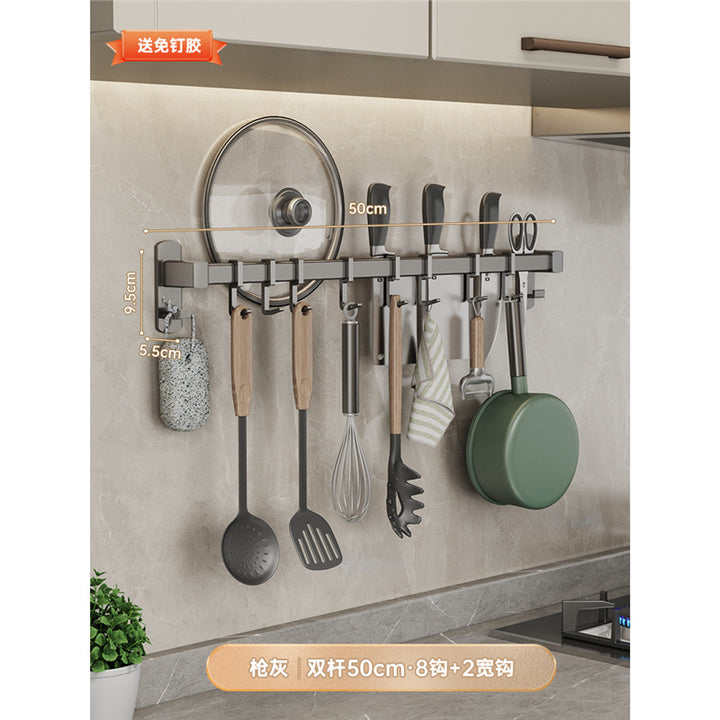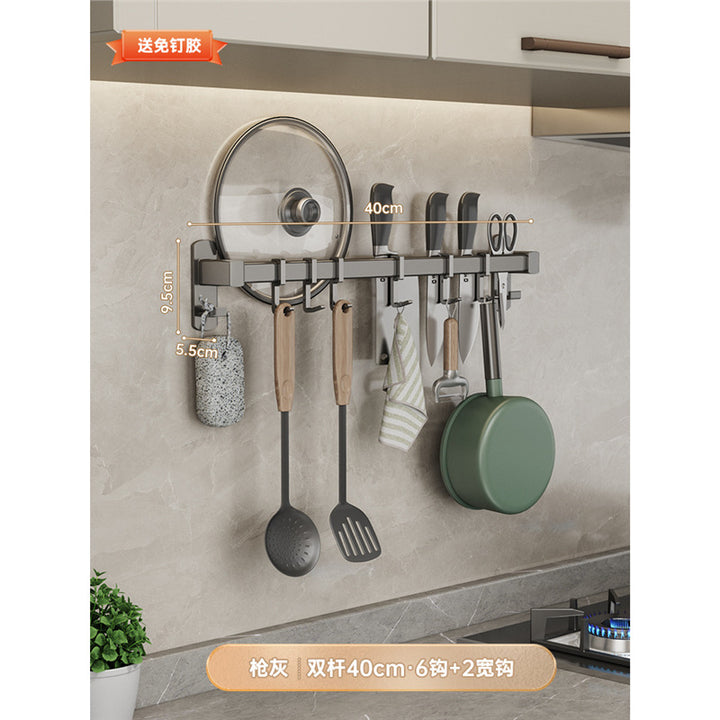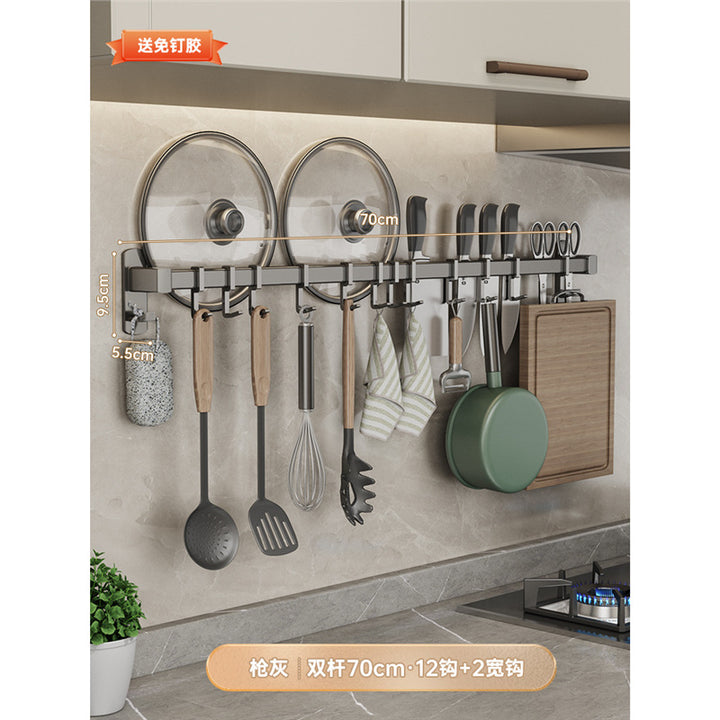 Gray kitchen hook No punching hanging rod Kitchen shelf Wall-mounted row hook Spatula Spoon Knife holder Storage rack
