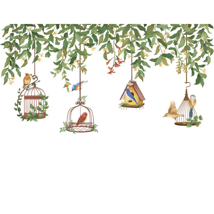 Green leaf top corner flower vine bird cage plant small fresh decorative sticker bedroom living room warm wall sticker ZDB-2182