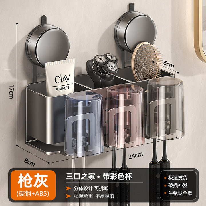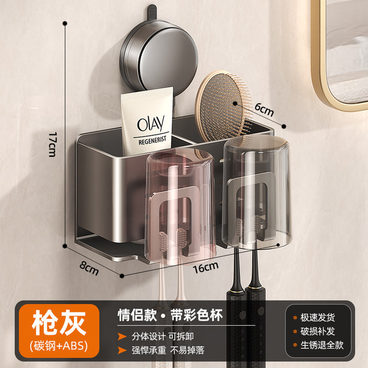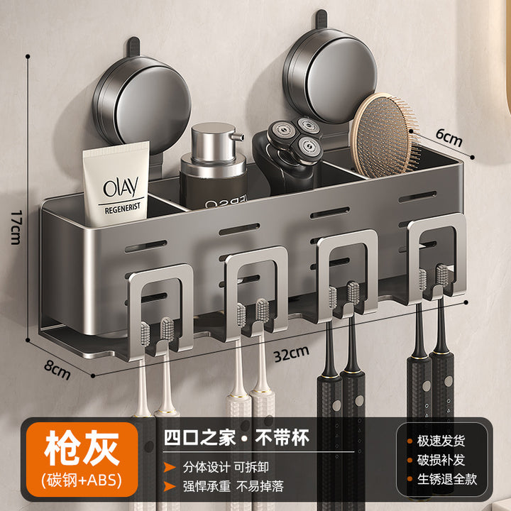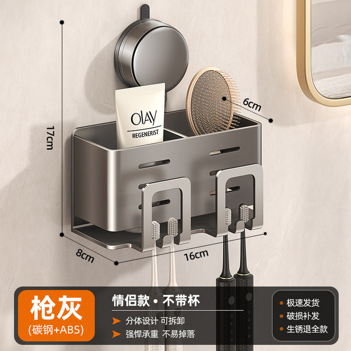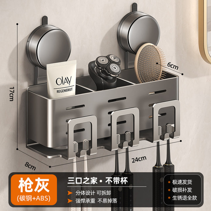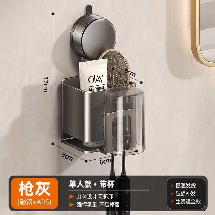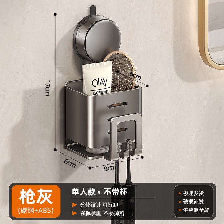 Grey suction cup, toothbrush holder, shelf, removable and washable, no punching in the bathro...