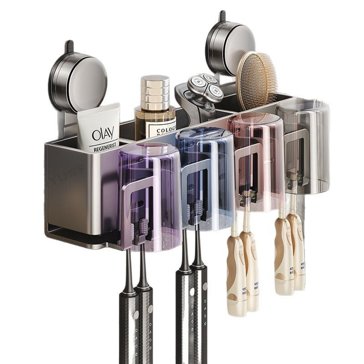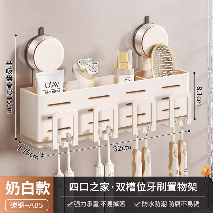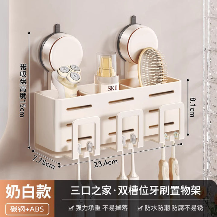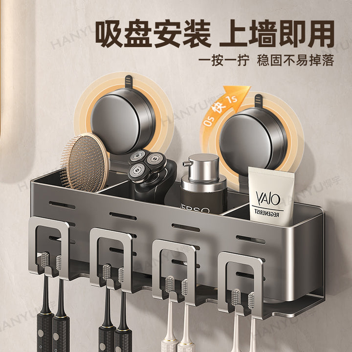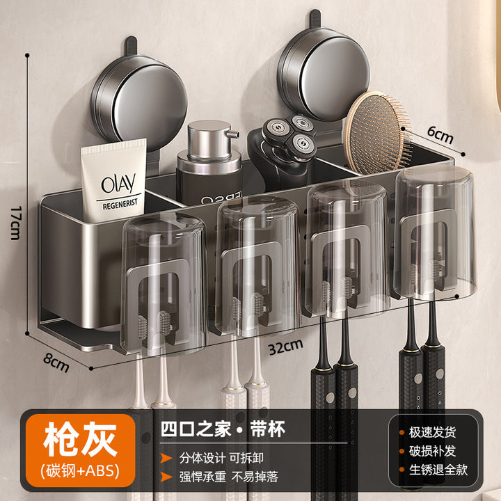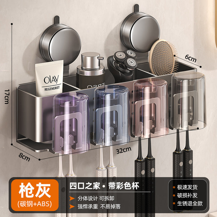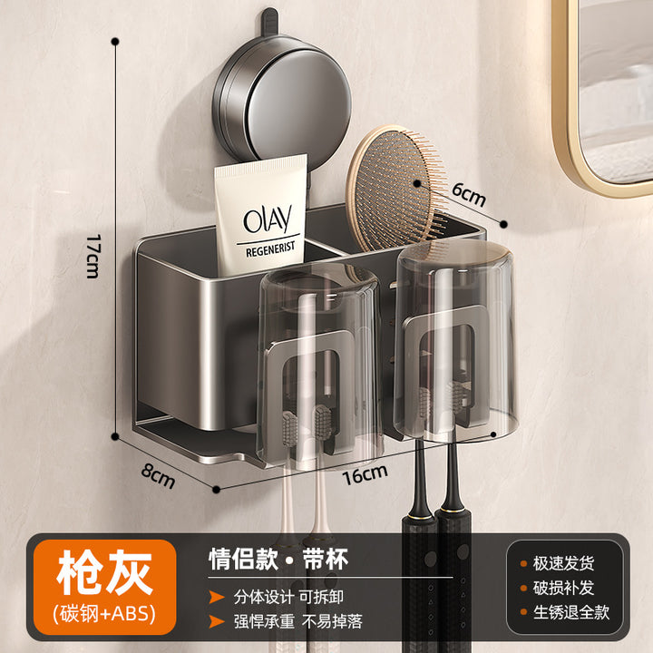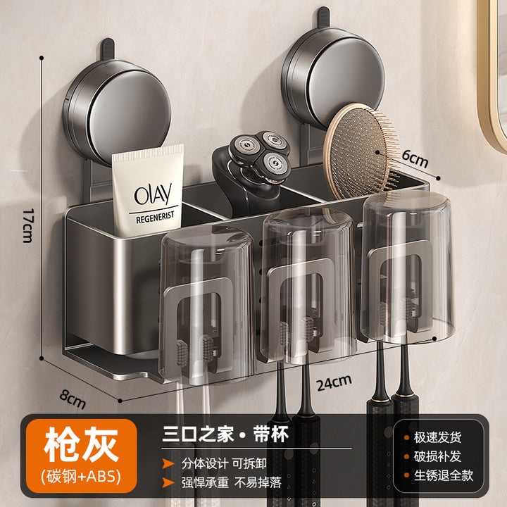 Grey suction cup, toothbrush holder, shelf, removable and washable, no punching in the bathro...