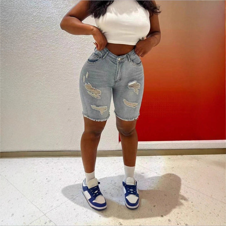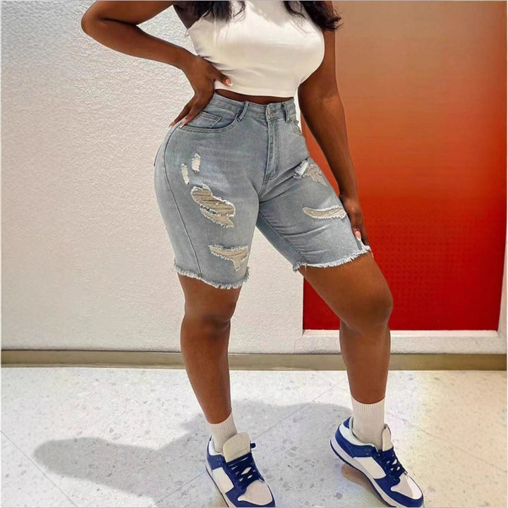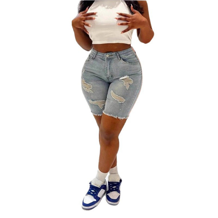 GTC08528 #European and American women's old-fashioned worn beard edge fashion five-point pants denim shorts
