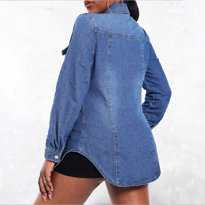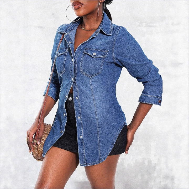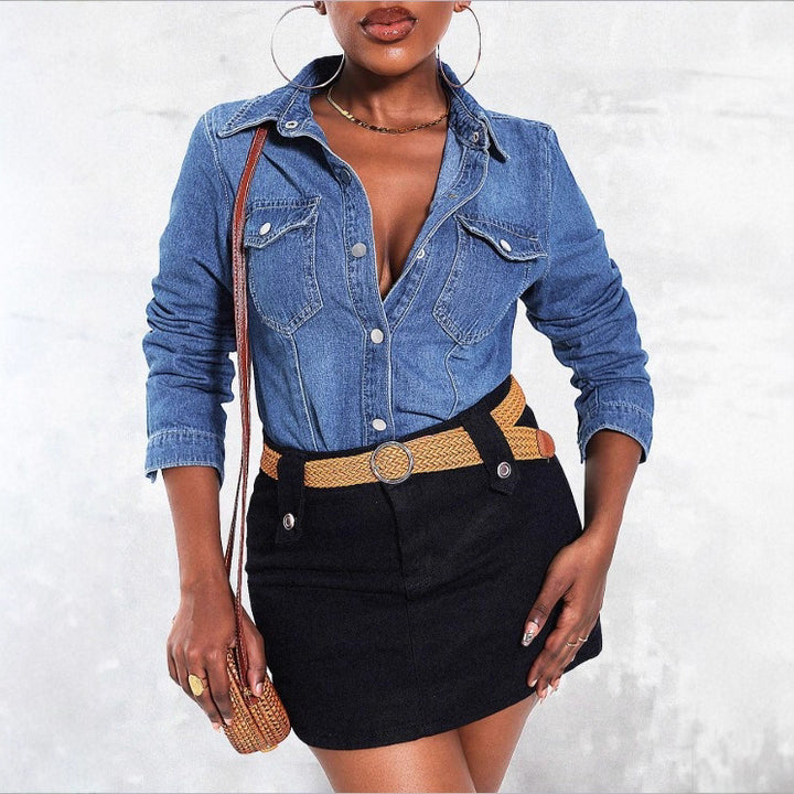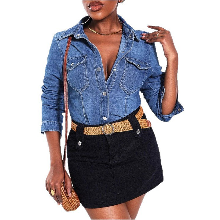 GTC08574 Cross-border new European beautiful women's slim-fit denim jacket slim-fit show lapel shirt