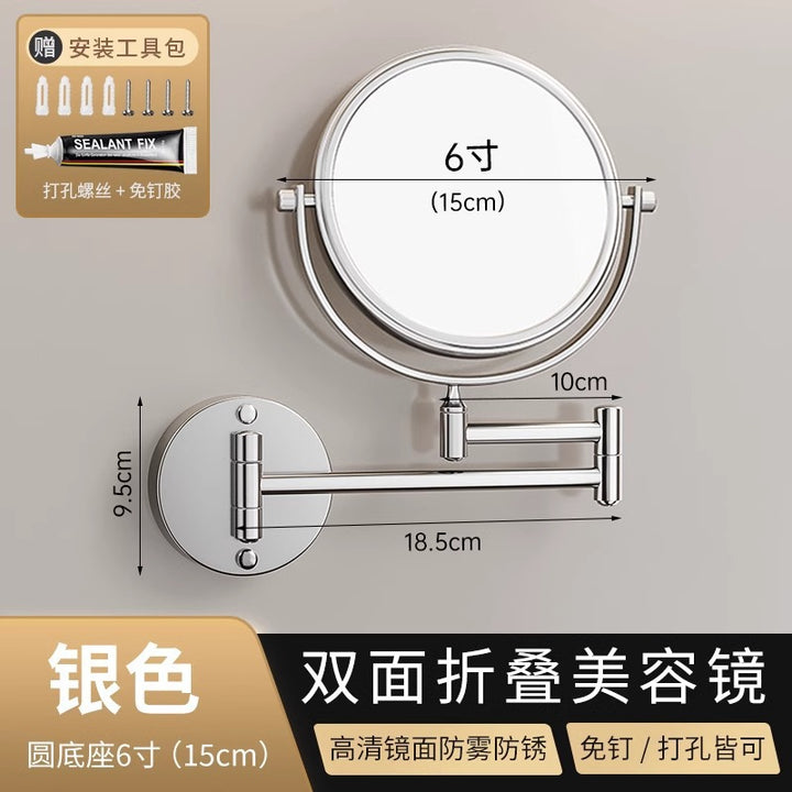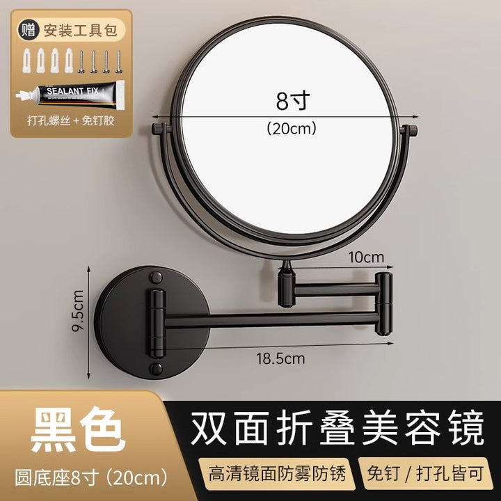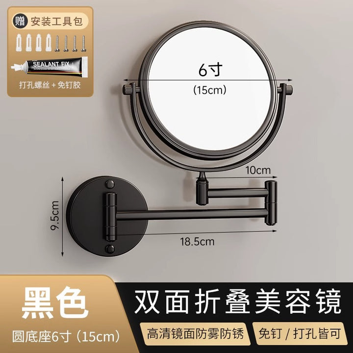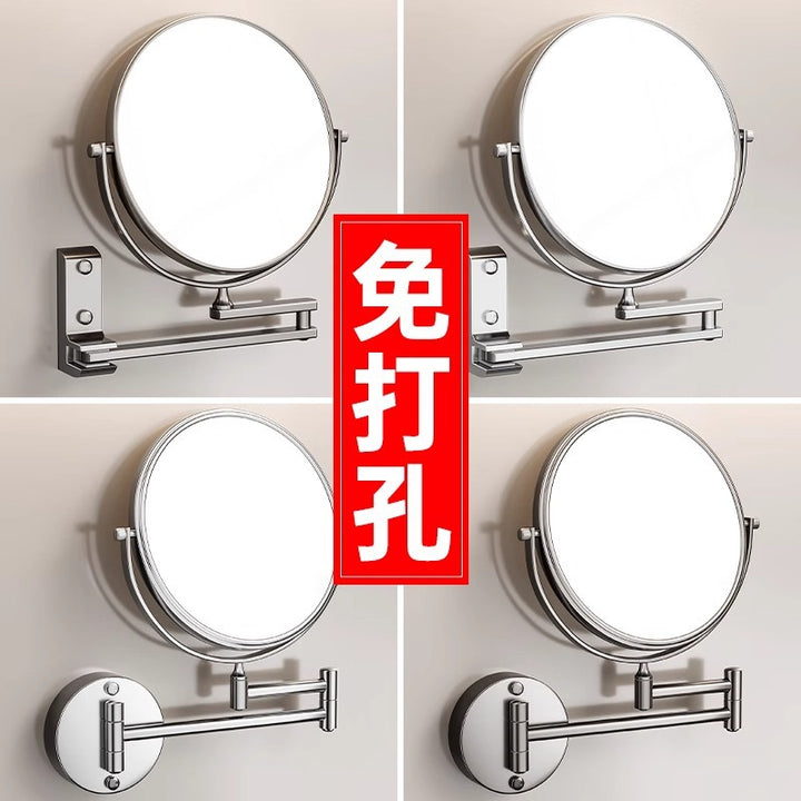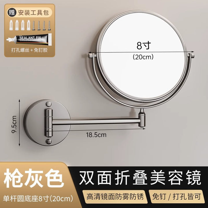 Gun ash bathroom retractable wall-mounted makeup mirror toilet non-punching beauty mirror folding hotel enlarged makeup mirror