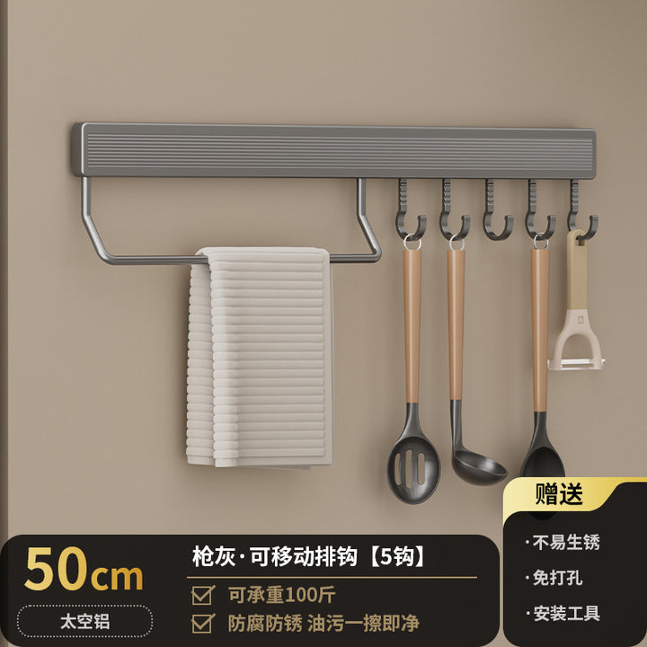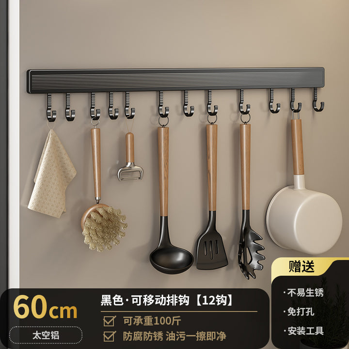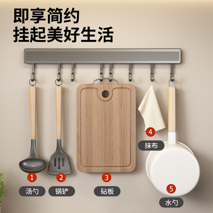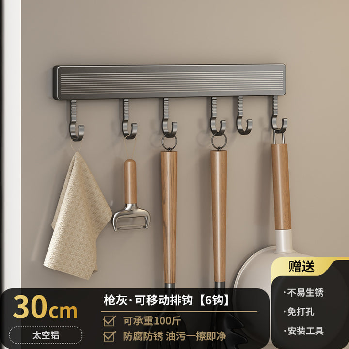Gun ash kitchen hook non-punching spatula shelf wall hanging spoon shovel hanging rod hanger row hook kitchen utensils storage