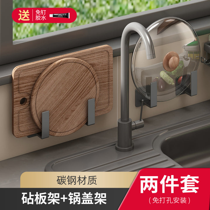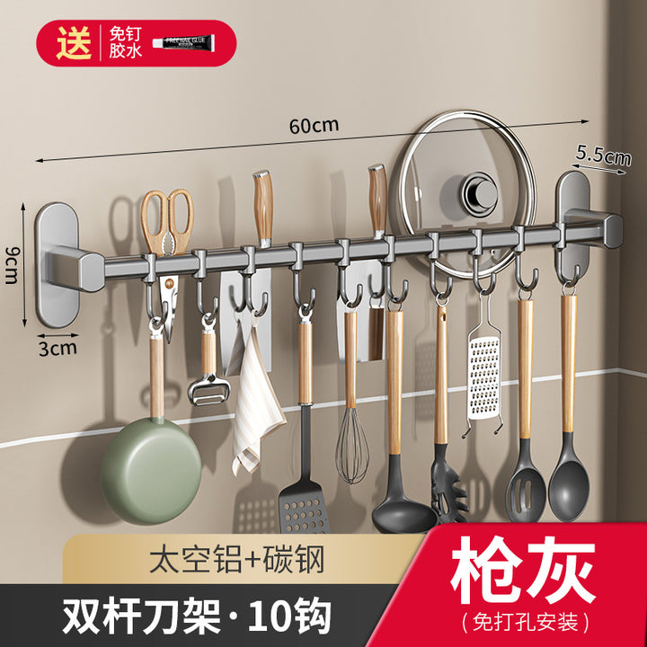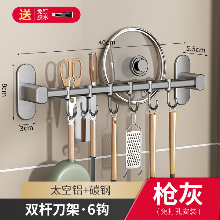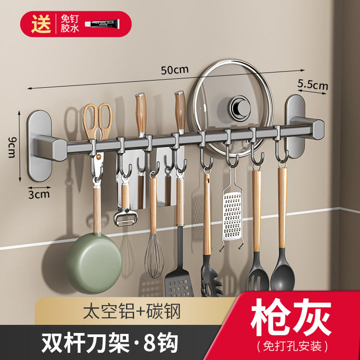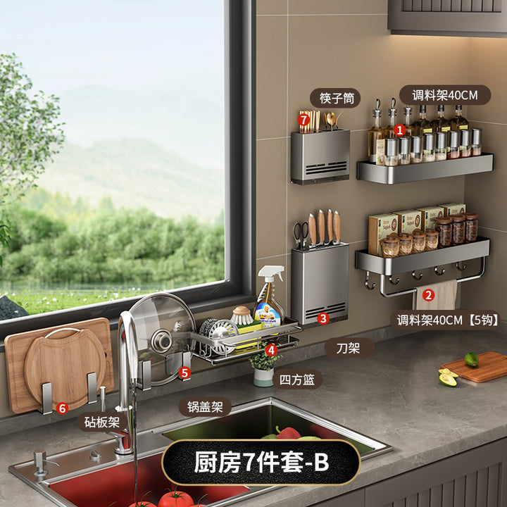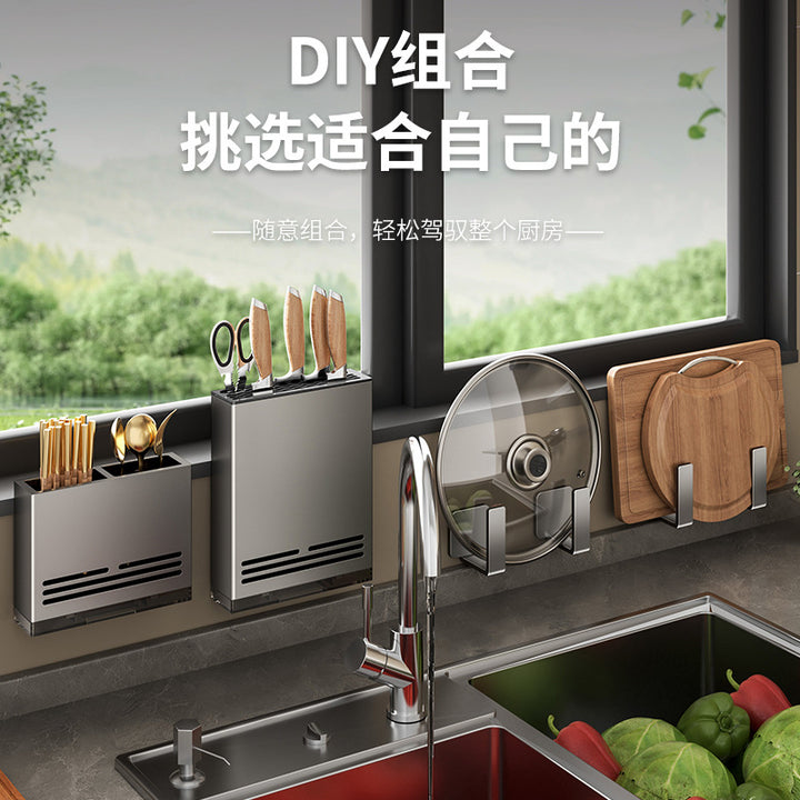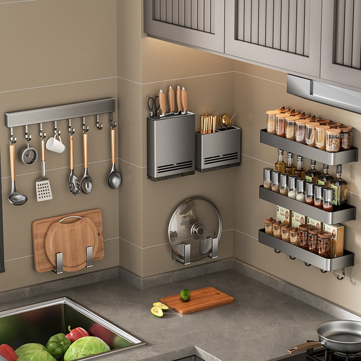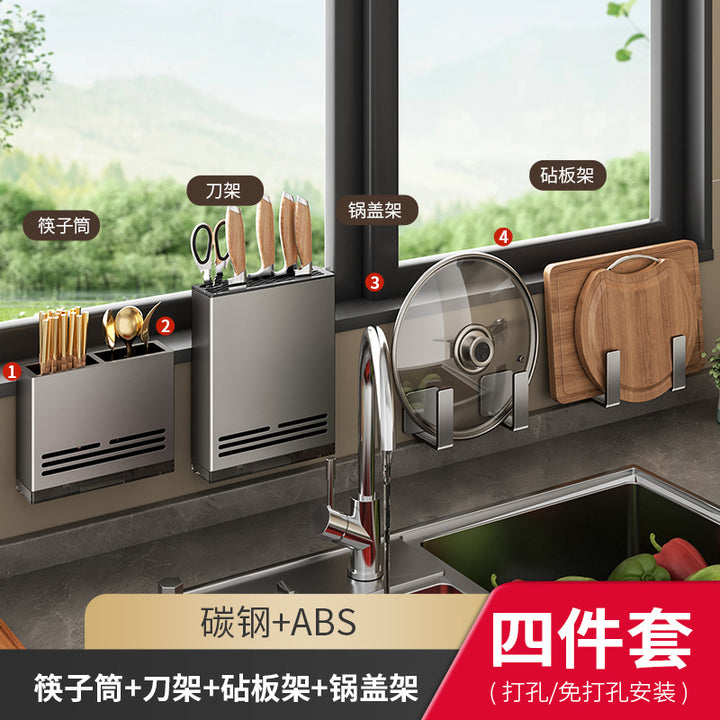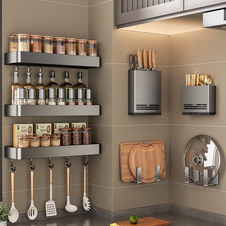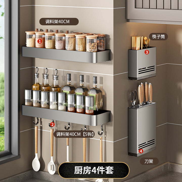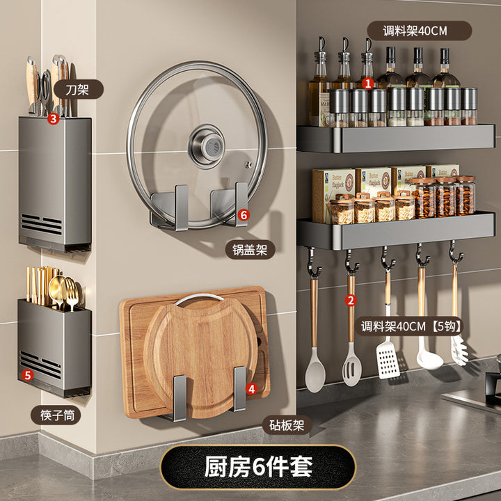 Gun ash kitchen rack non-punching wall-mounted condiments multi-functional knife holder cutting board drain storage seasoning rack