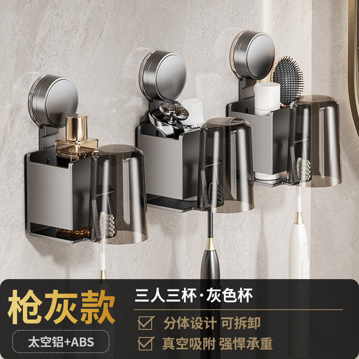 Gun ash suction cup, toothbrush holder, shelf, brush cup holder, bathroom, high-end wall-moun...