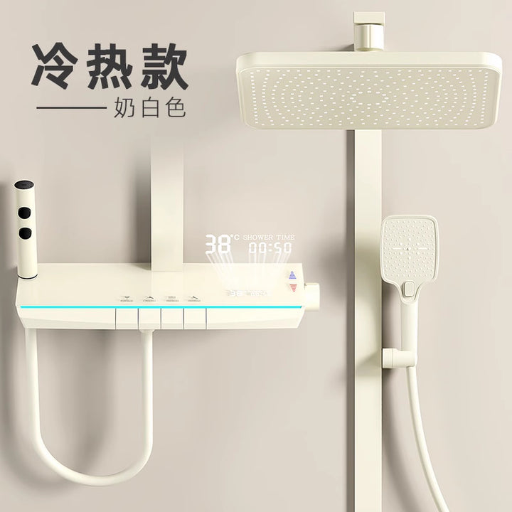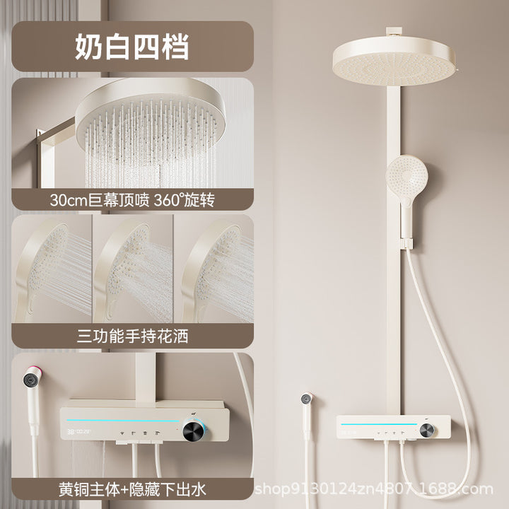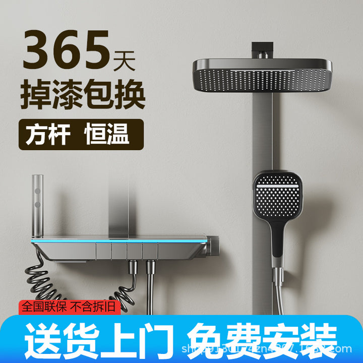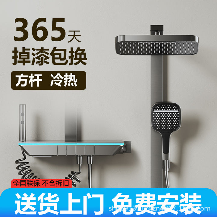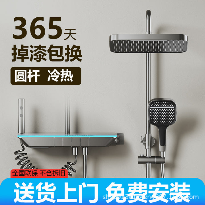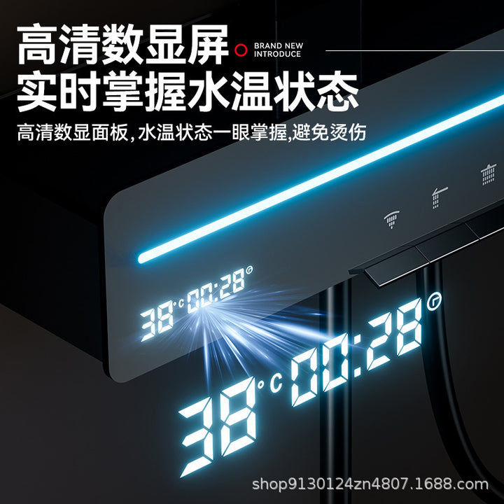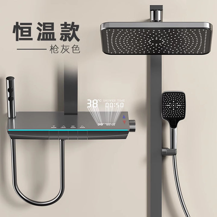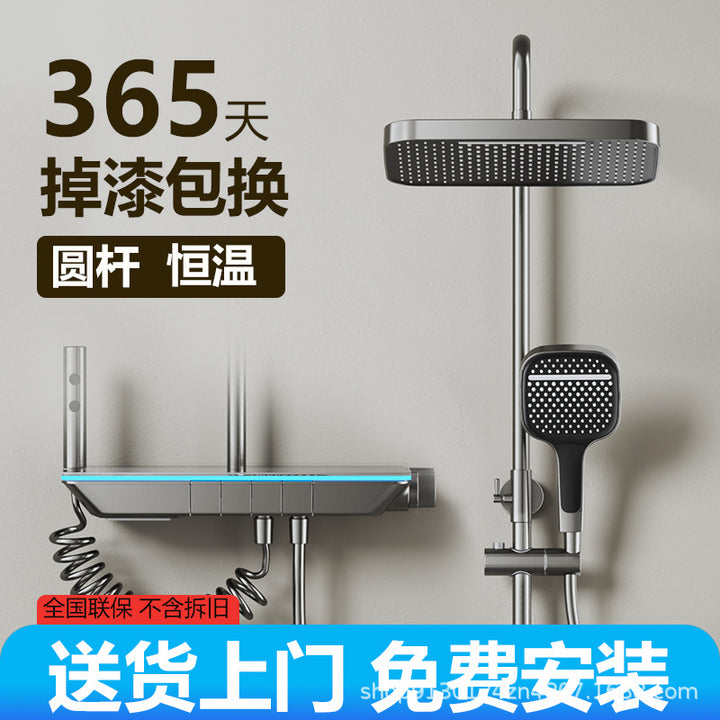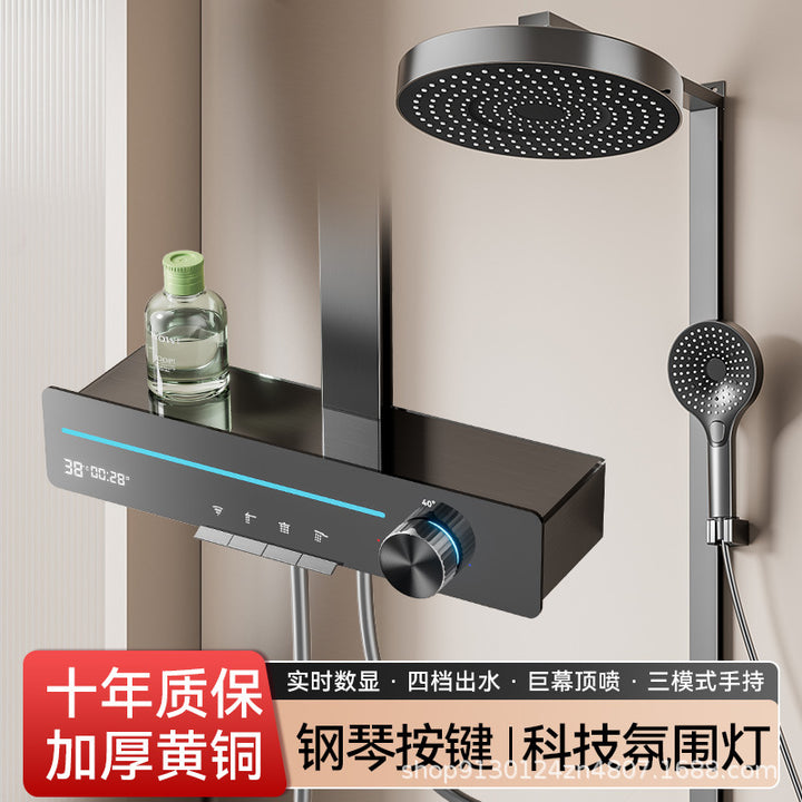 Gun ash thermostatic shower shower set, high-end intelligent digital display ambient light, l...