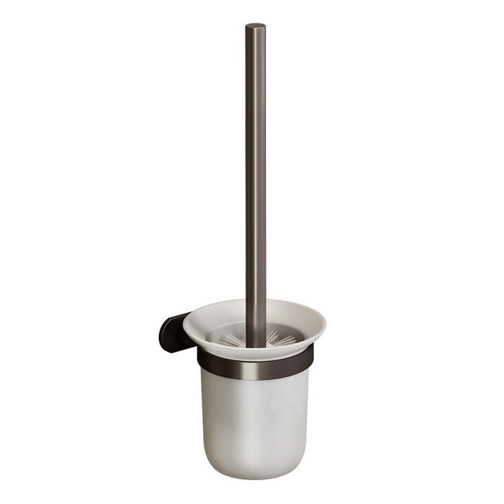 Gun ash toilet brush holder non-punching space aluminum wall-mounted glass base cleaning toilet brush toilet brush rack set