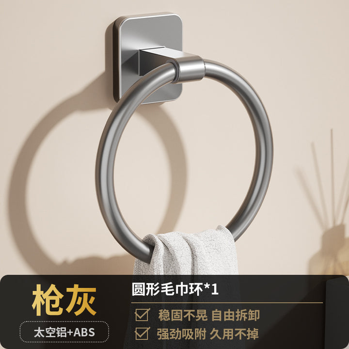 Gun gray bathroom towel ring space aluminum towel hanger bathroom hand towel ring washstand wall hanging round hanging ring