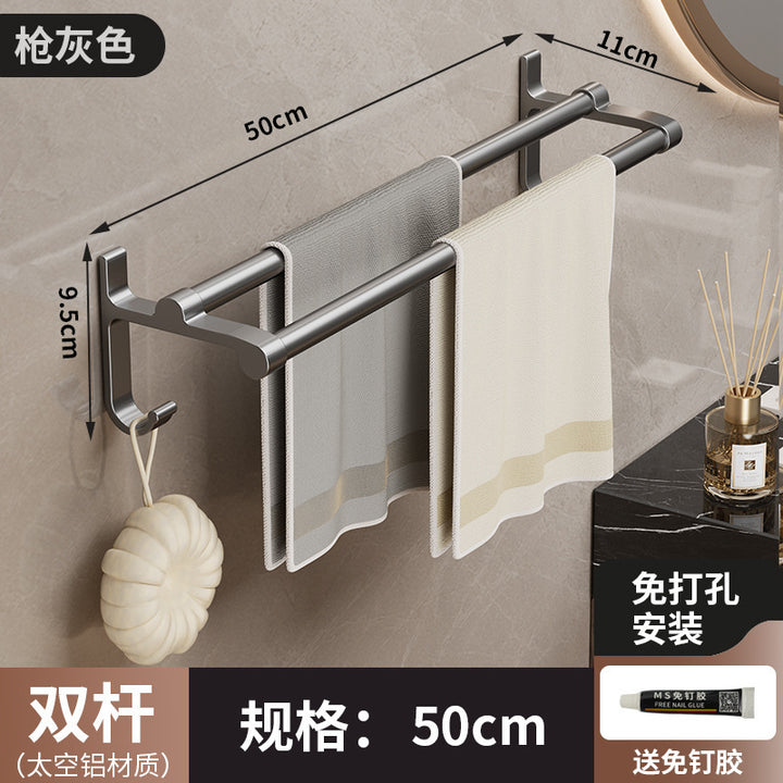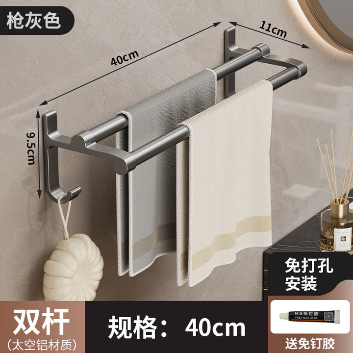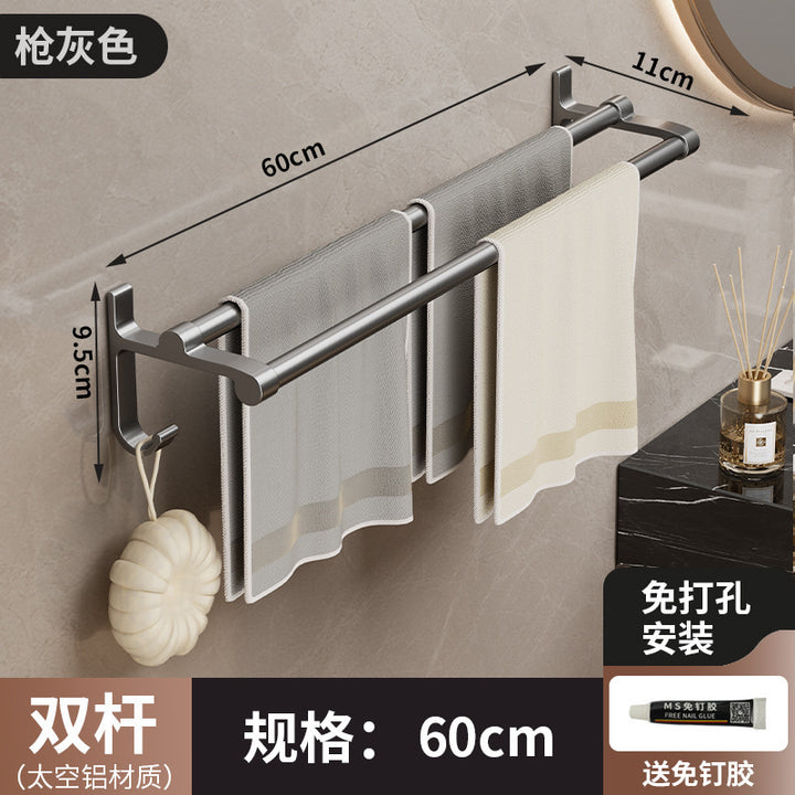 Gun gray space aluminum non-punching bath towel rack toilet bathroom household towel rack toilet wall rack