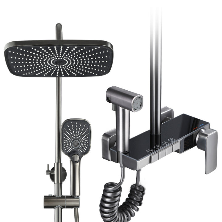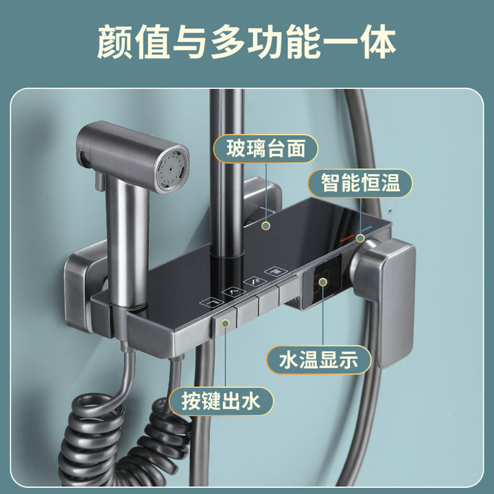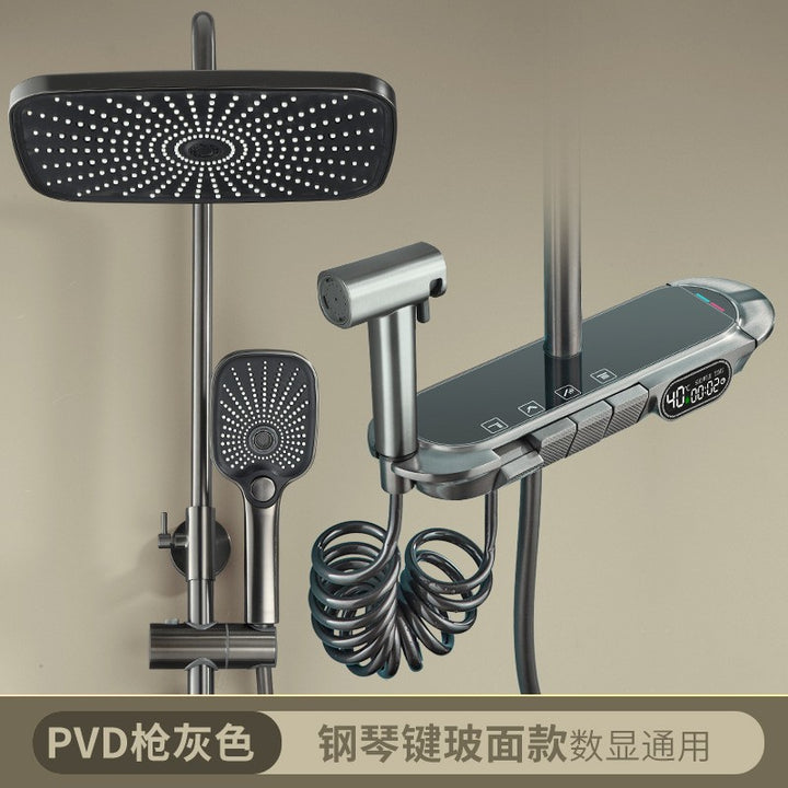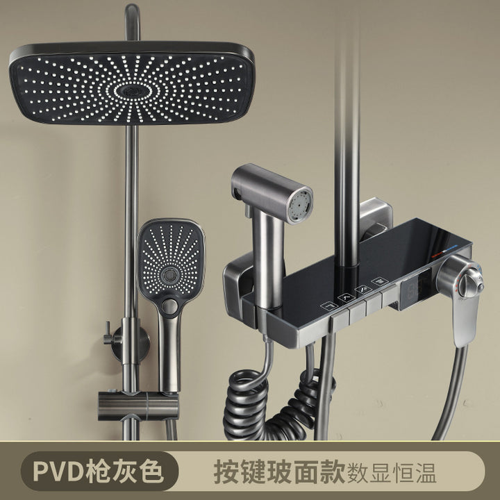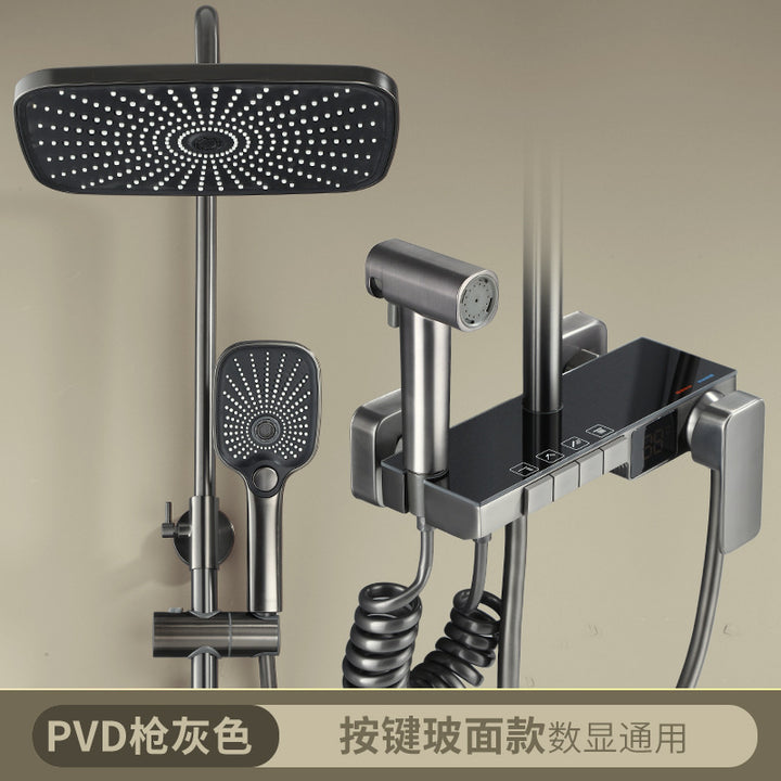 Gun gray thermostatic digital display shower shower set, household bathroom shower shower hea...