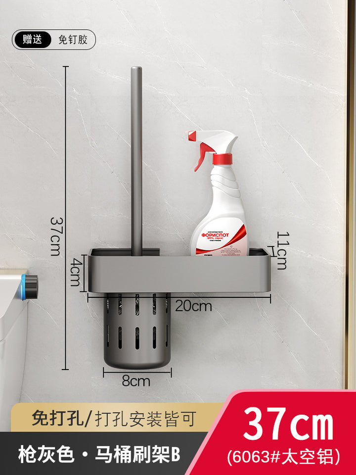 Gun Gray Toilet Toilet Brush Shelf Household Wash Toilet Cleaning Artifact Wall Mounted Set Squat Pit Brush