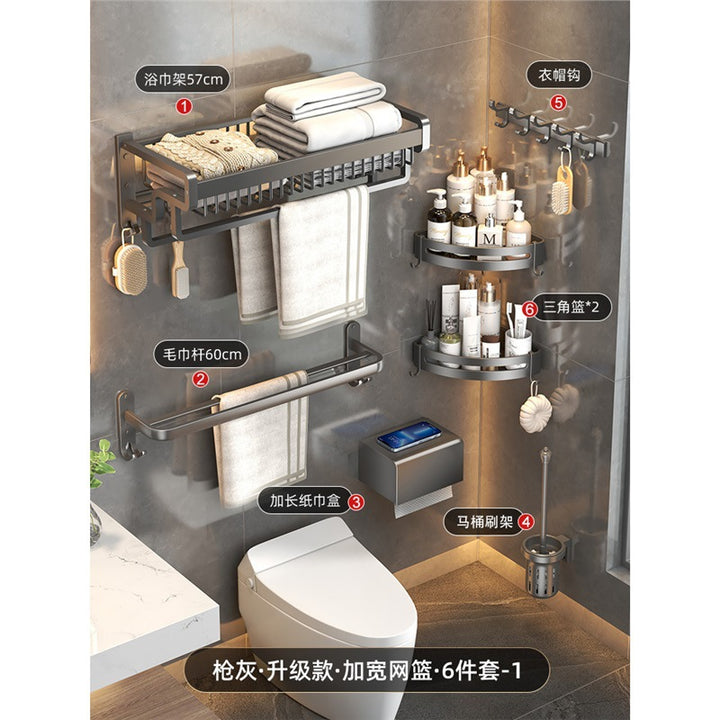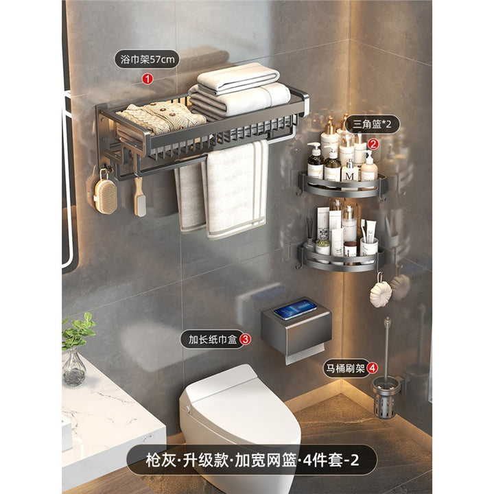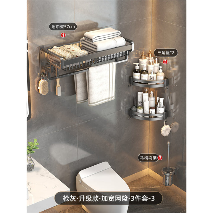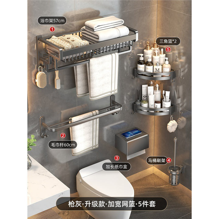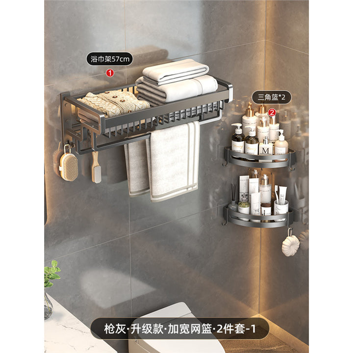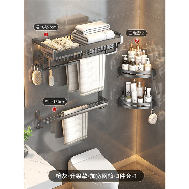 Gun gray towel rack No punching toilet Bathroom shelf Shelf Bath towel rack Toilet bathroom hardware set