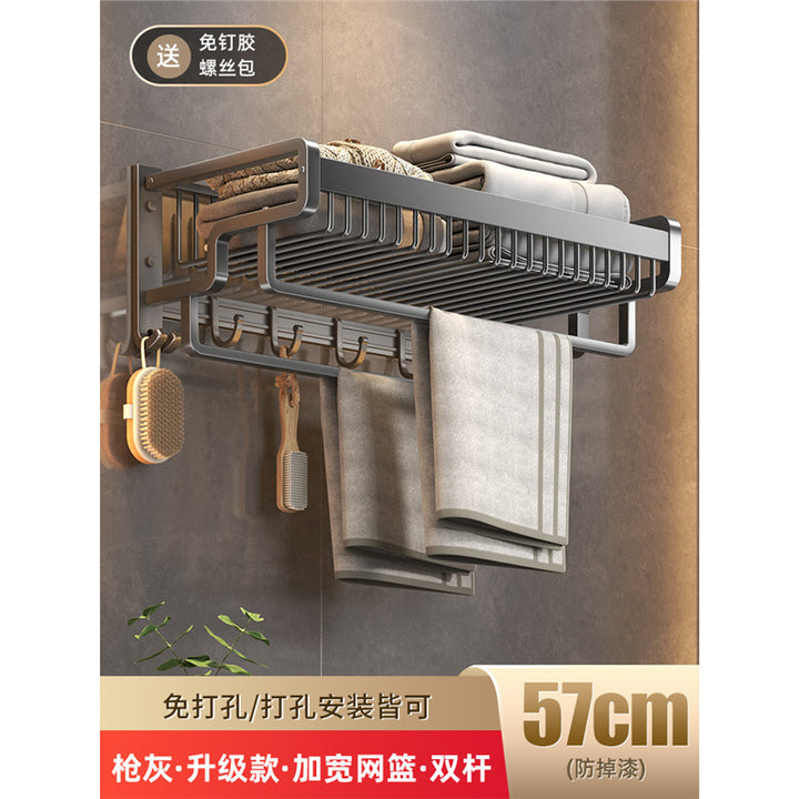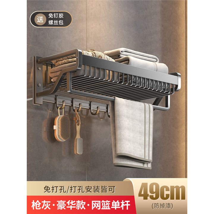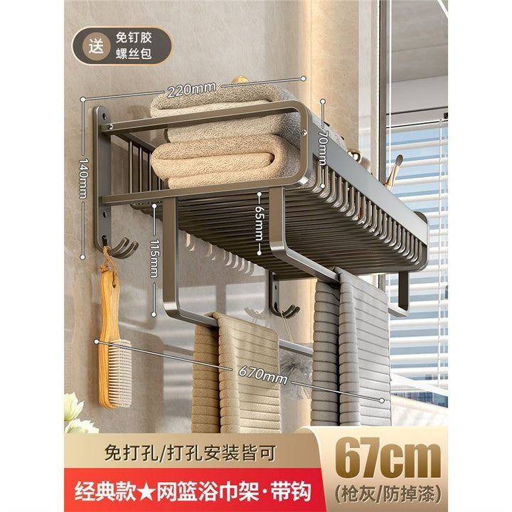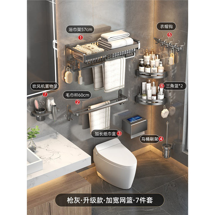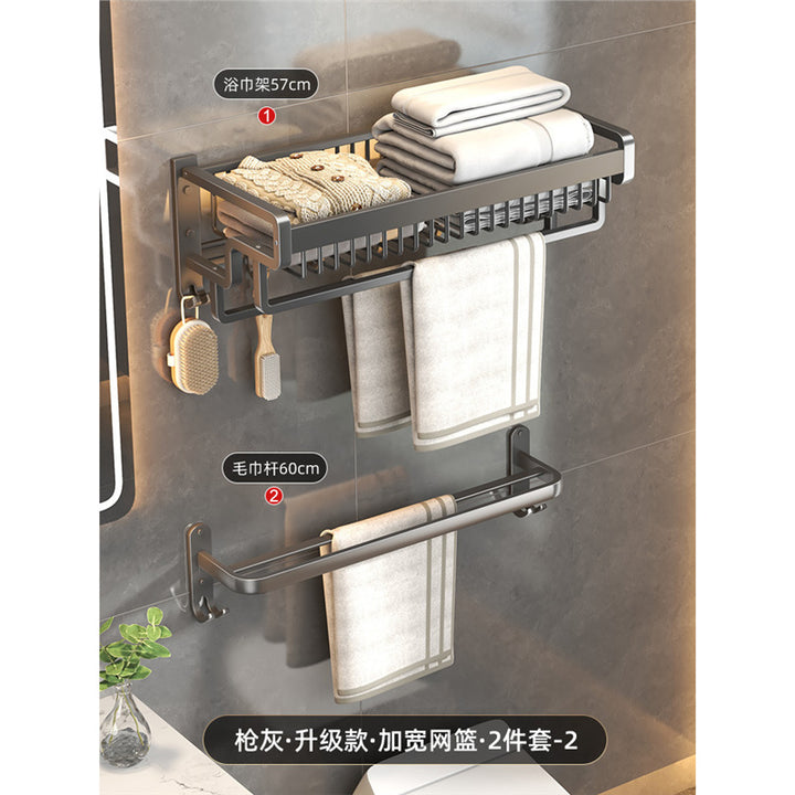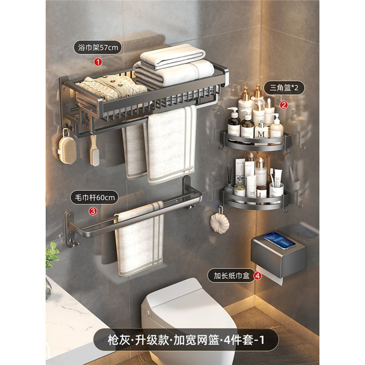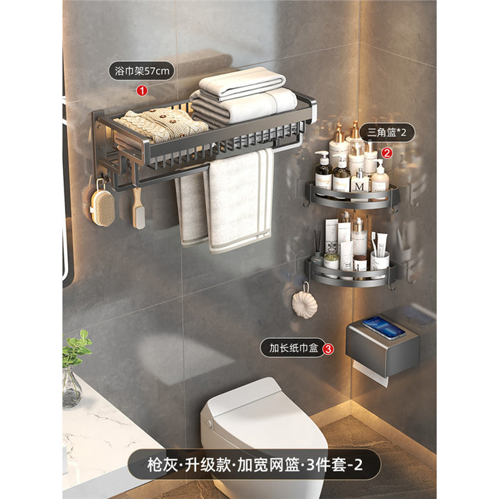 Gun gray towel rack No punching toilet Bathroom shelf Shelf Bath towel rack Toilet bathroom hardware set