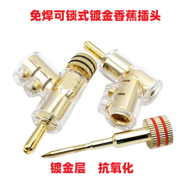 Gun type pure copper gold-plated banana 4MM plug power amplifier audio speaker cable connector solder-free lockable speaker connection