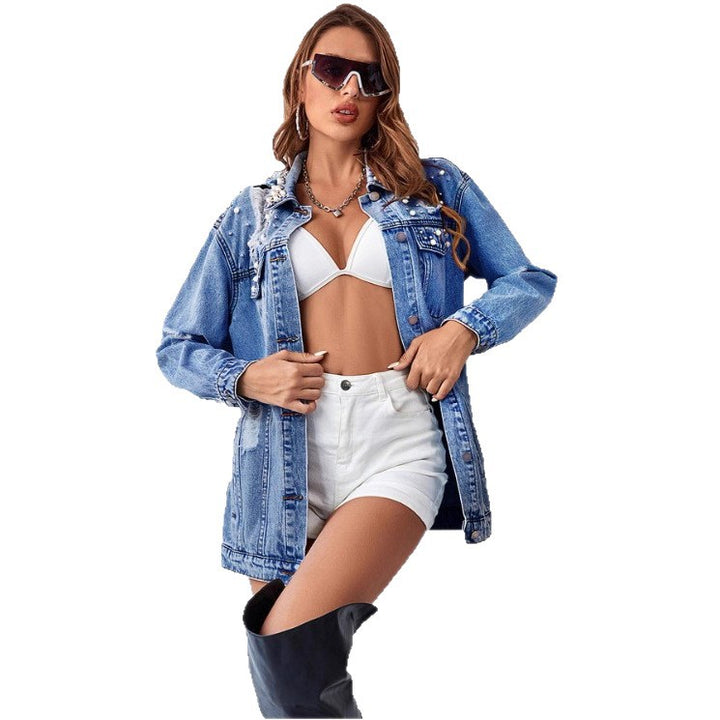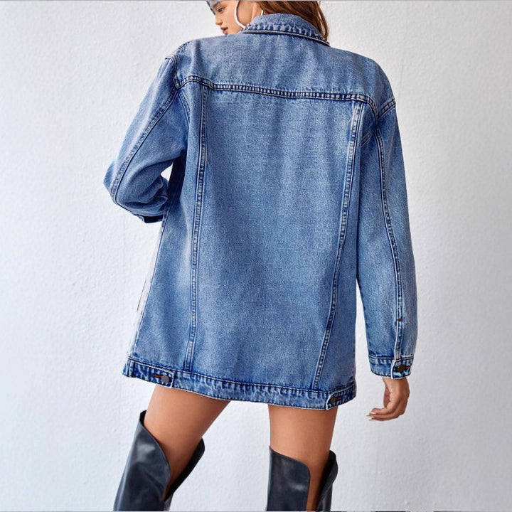 GY2001 #2025 new European and American blue flanged pocket denim jacket washed long-sleeved lapel