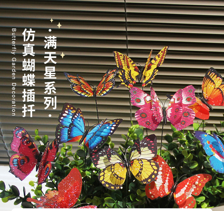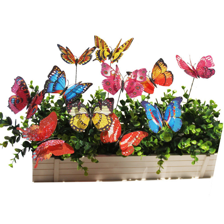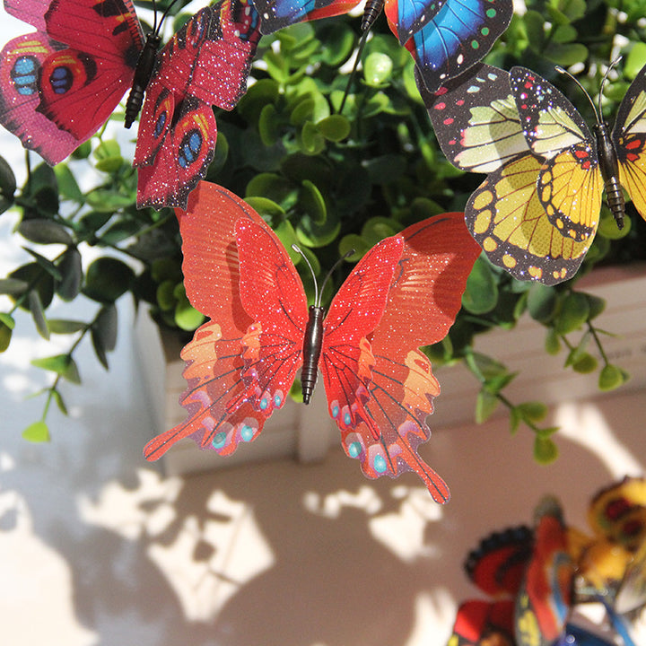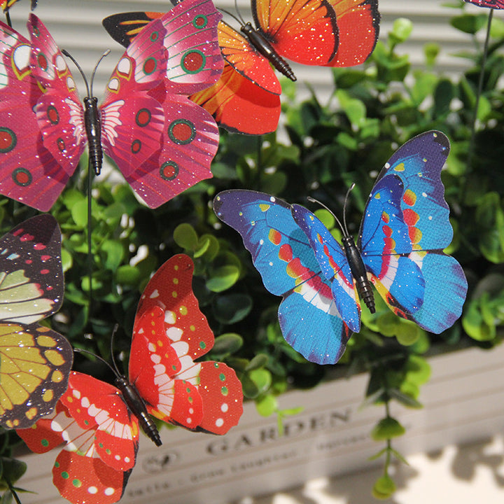 Gypsy 10 + 7 Double Layer Plug Rod Butterfly Glitter Butterfly 10 Pack Gardening Party Decoration Event Arrangement Butterfly