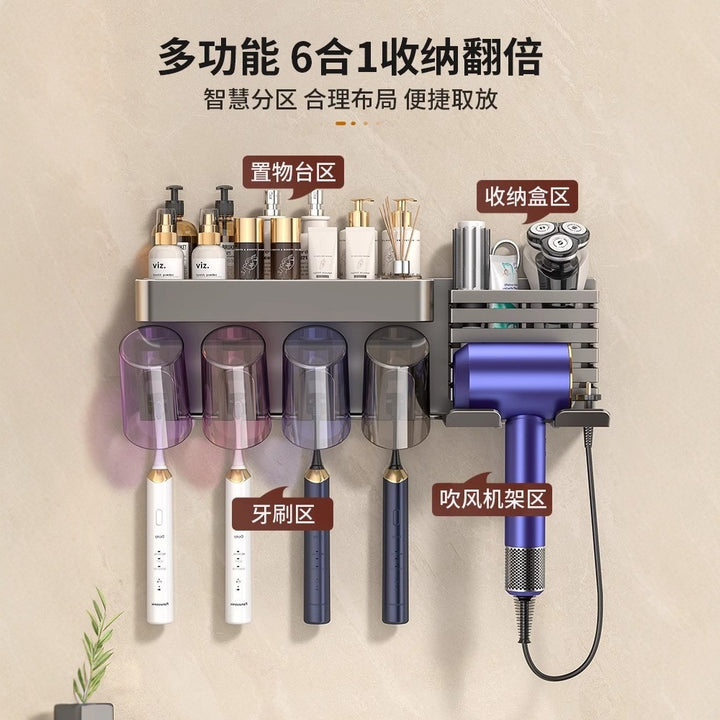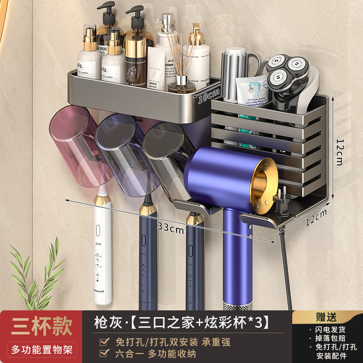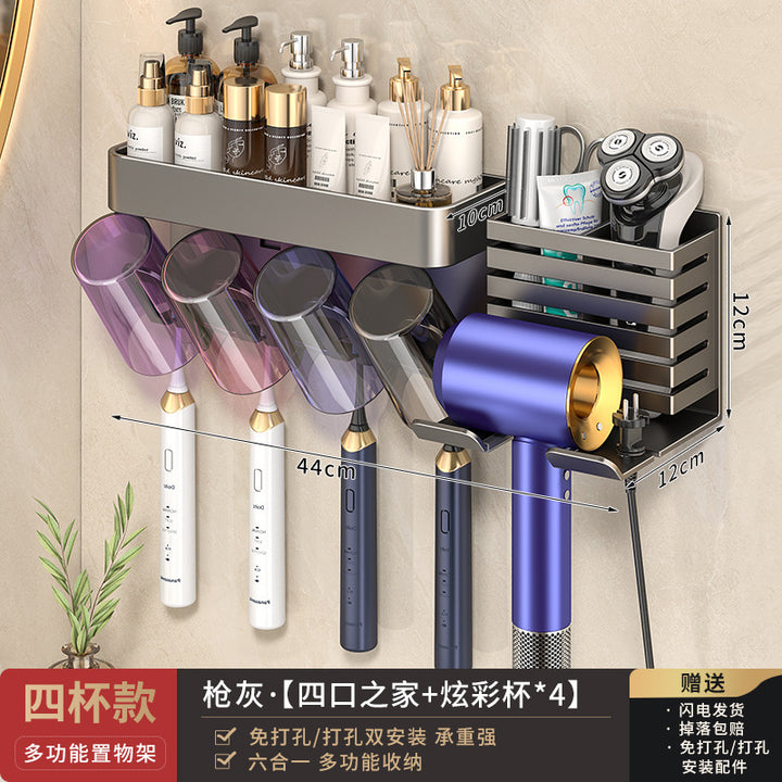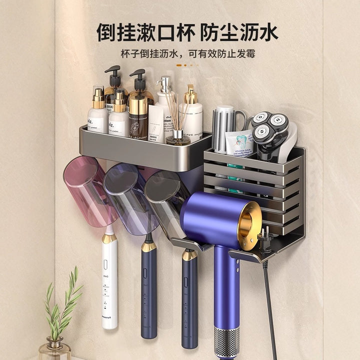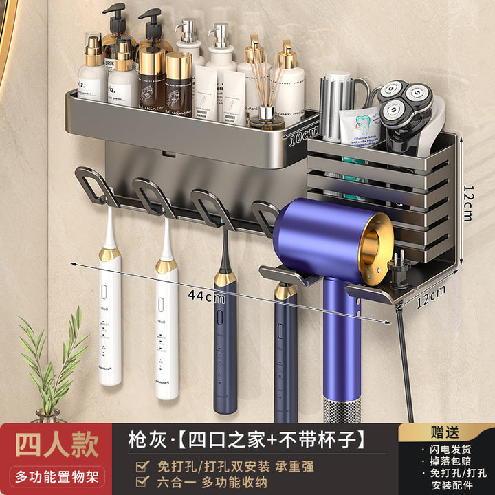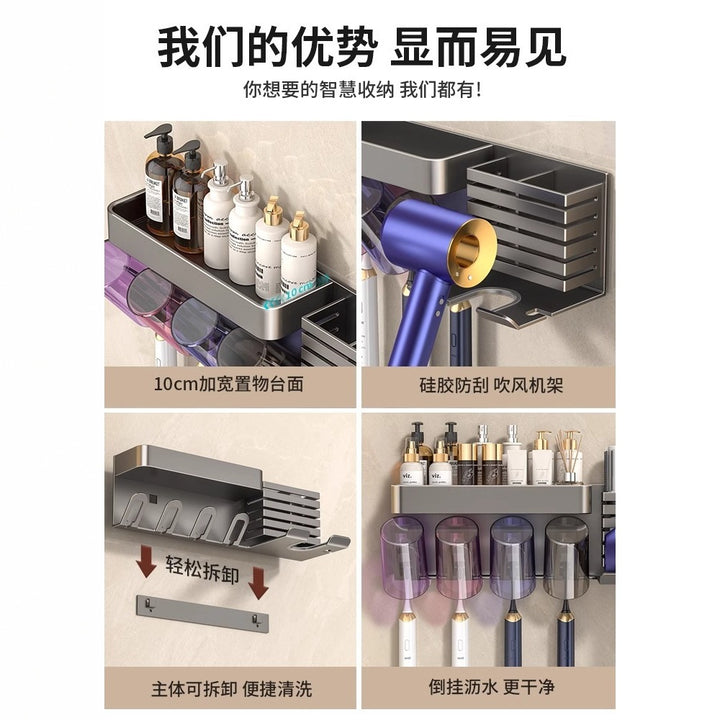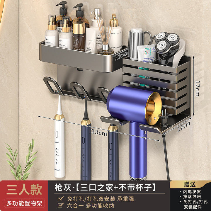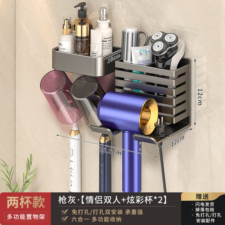 Hair dryer rack, hair dryer rack with toothbrush bracket, non-punching wall-mounted removable and washable hair dryer storage rack