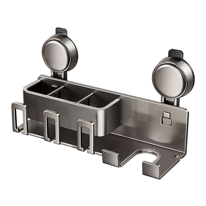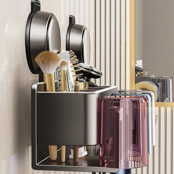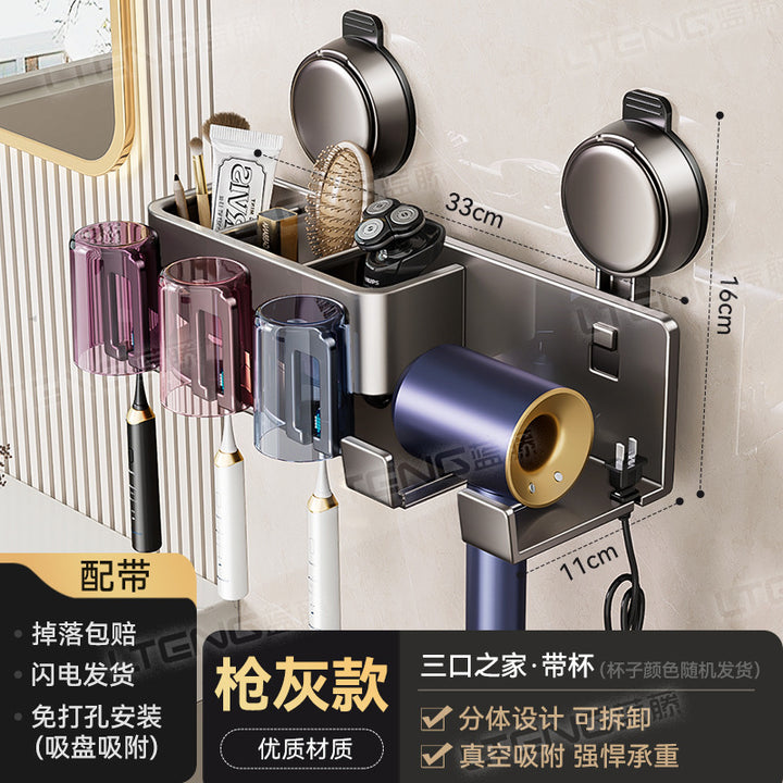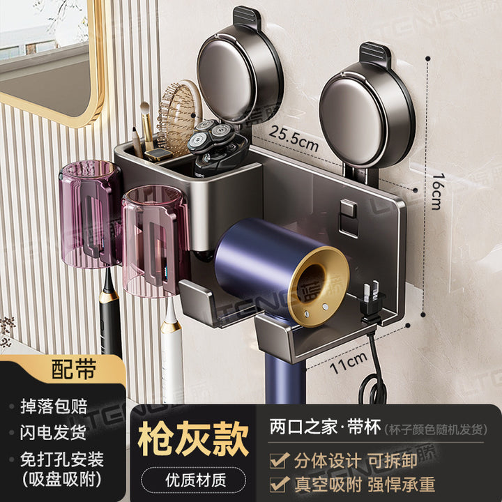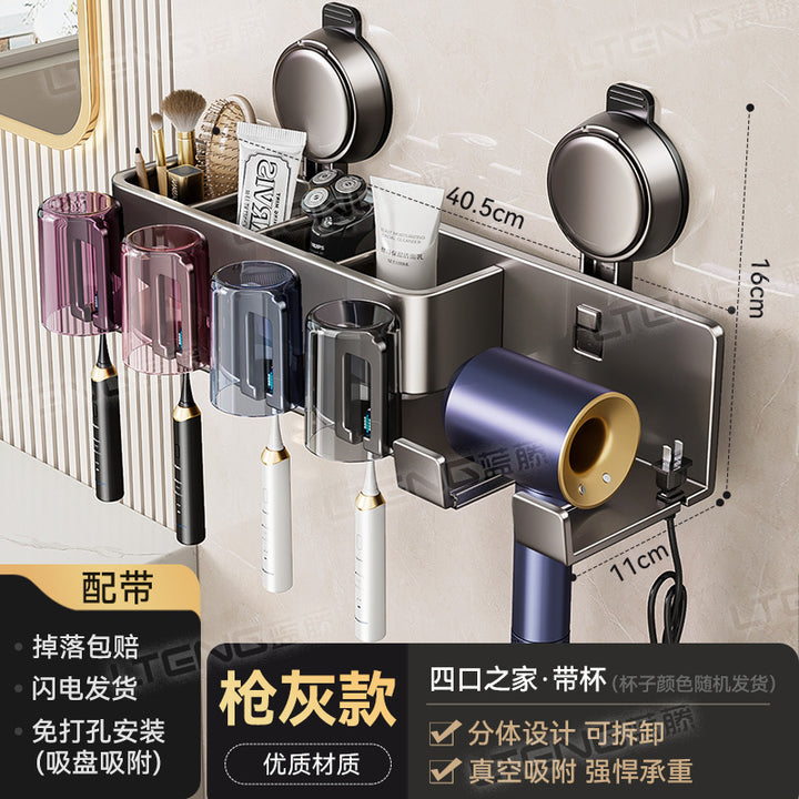 Hair dryer rack, hair dryer rack with toothbrush holder, non-punching suction cup, wall-mounted storage rack, aluminum