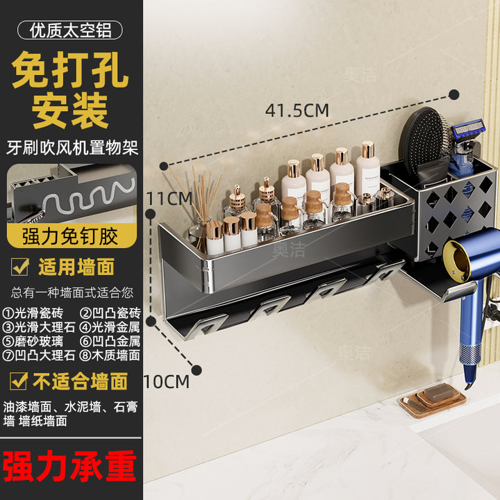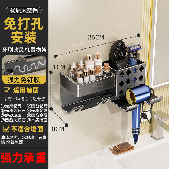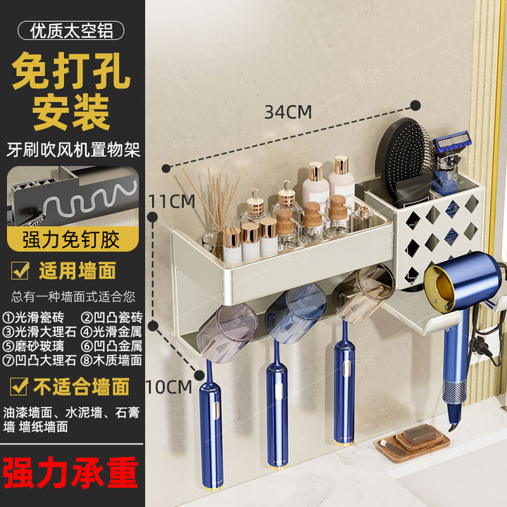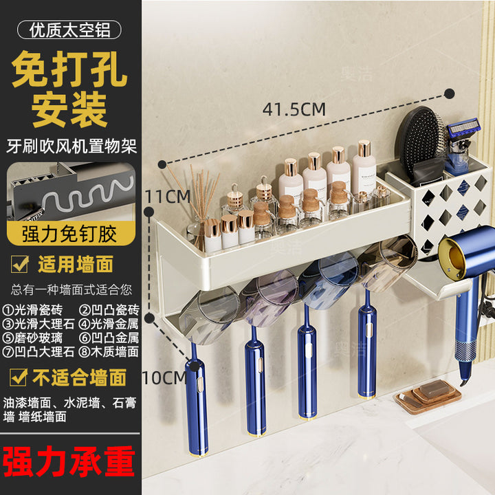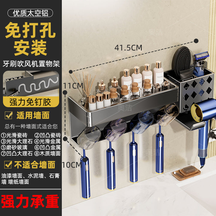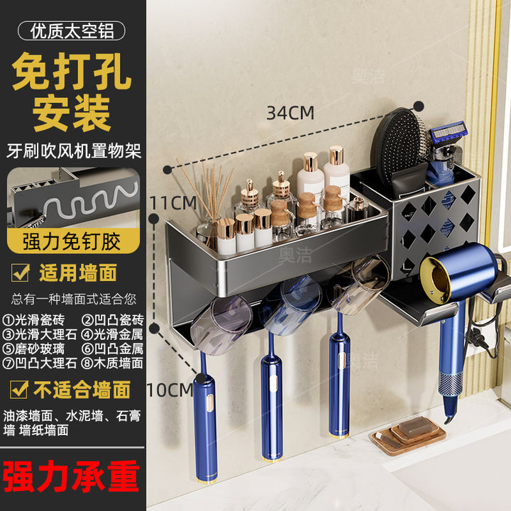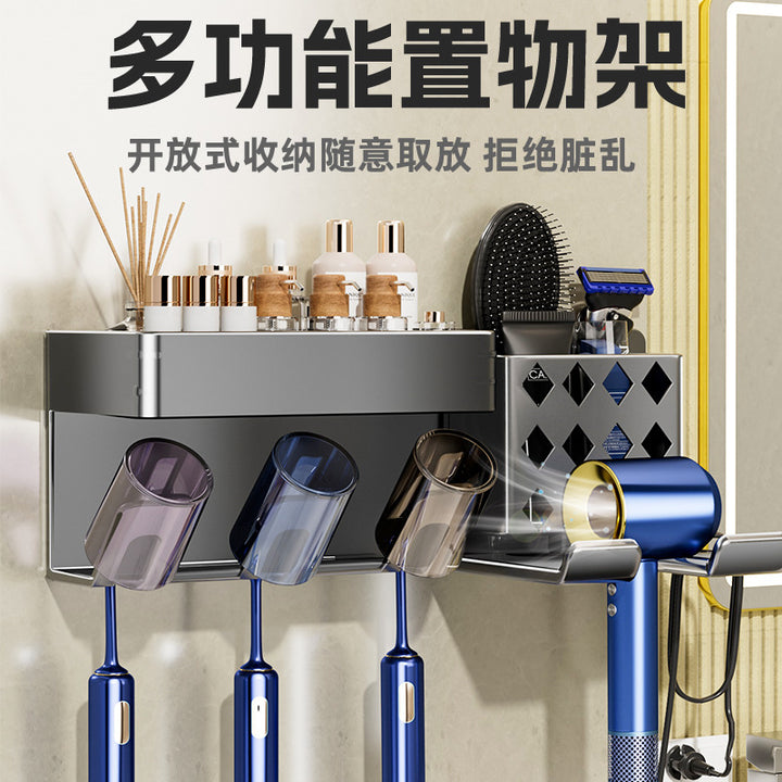 Hair dryer, toothbrush, integrated shelf, gun ash, electric bracket, bathroom, no punching, wall-mounted mouthwash cup, toothset.