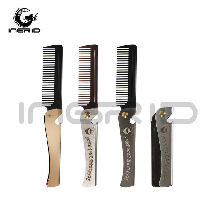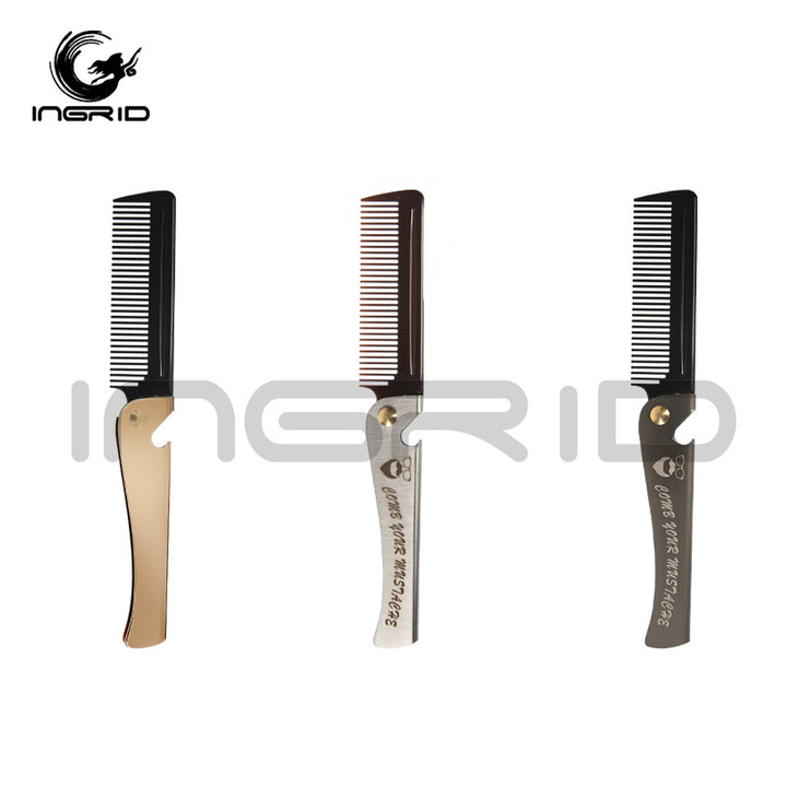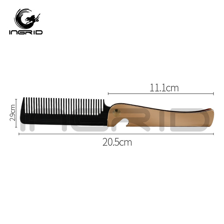 Hair salon special stainless steel folding oil hair comb pocket portable multi-functional wine opener hair styling comb