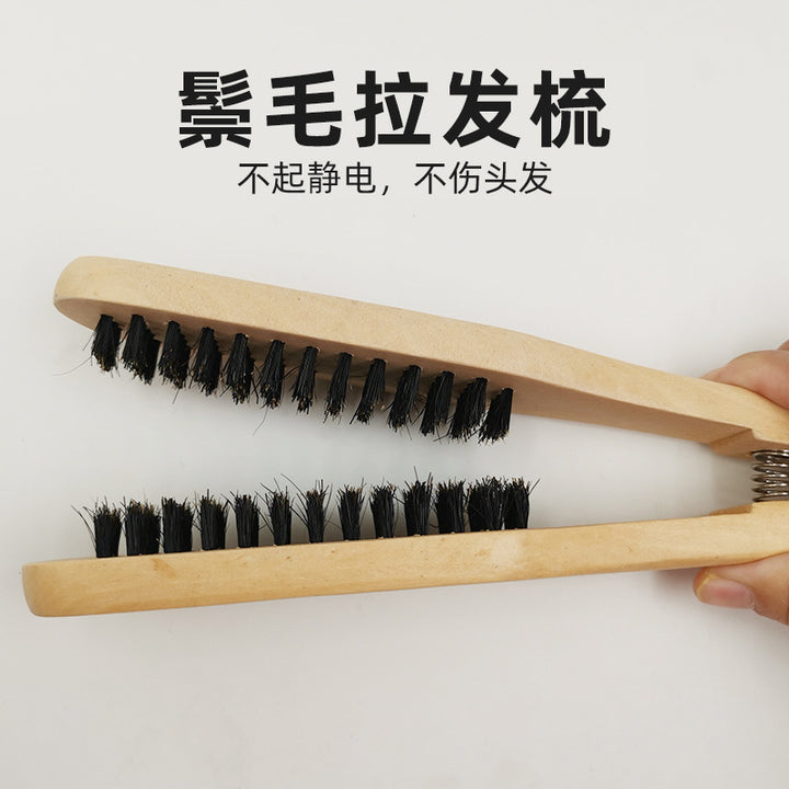 Hair Straightening Comb Modeling New V-shaped Clip Comb Mane Curling Hair Comb High Temperature Resistant Anti-Static Wood Handle Hair Straightenin...