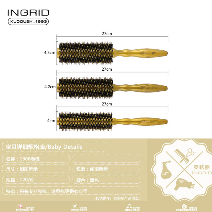 Hair tools straight hair comb barber shop blow styling hair salon cylindrical roll comb solid wood handle anti-static comb roller comb