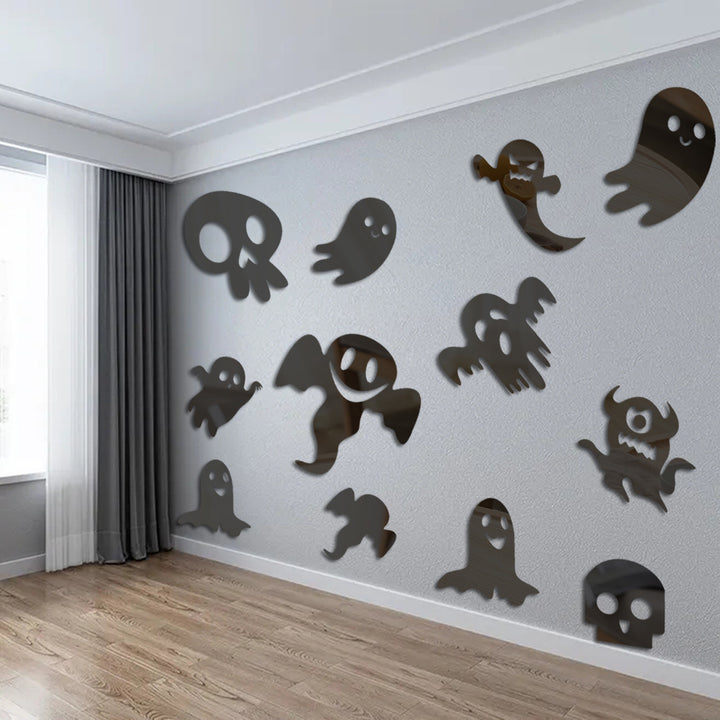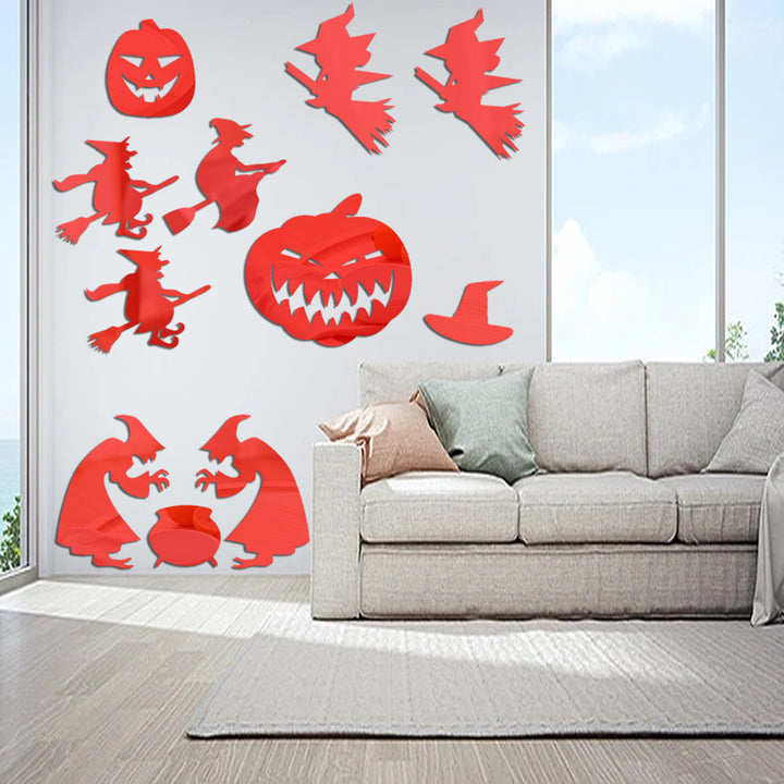 Halloween Bat Witch Pumpkin Mirror Wall Sticker Wall Decoration Holiday Arrangement Self-Adhesive Sticker
