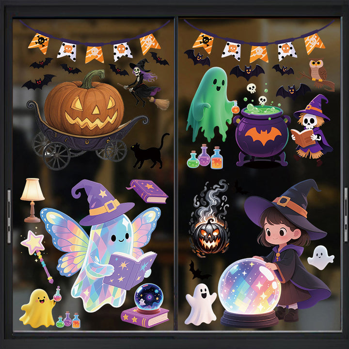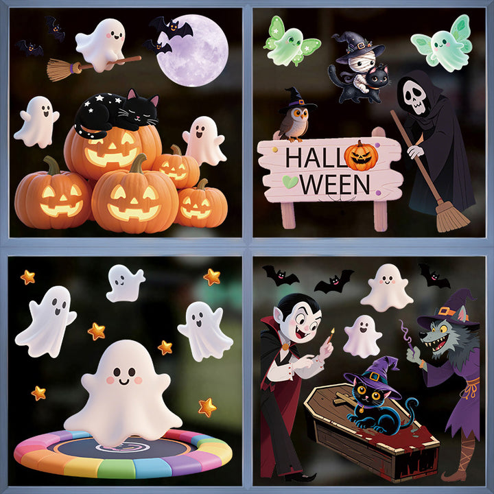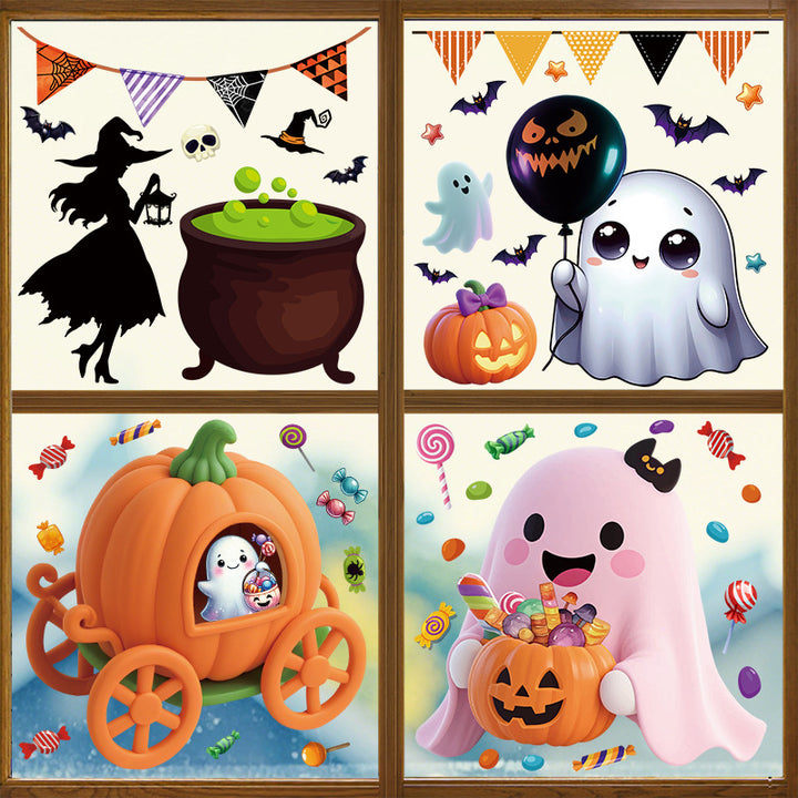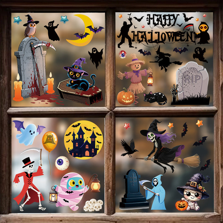 Halloween Giant Ghost Monster Ghost Window Sticker Witch Death Bat Skeleton Halloween Party D...