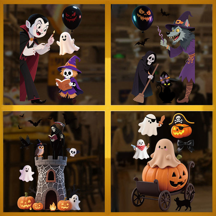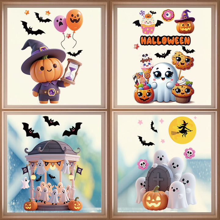 Halloween Haunted House Stickers Cross Border Witch Ghost Bat Window Stickers Halloween Glass Stickers