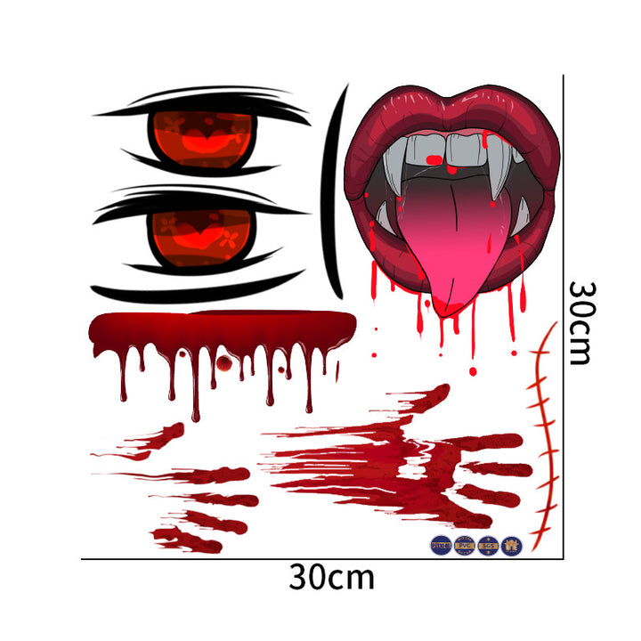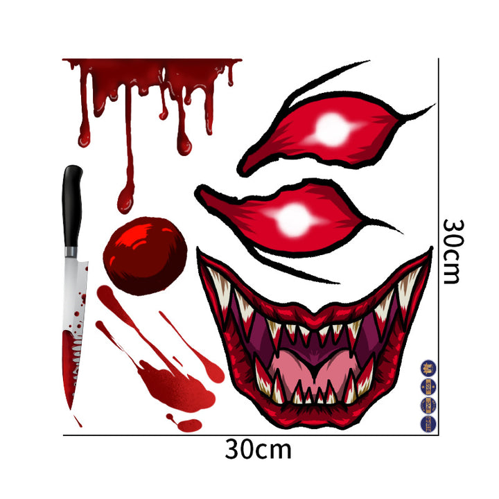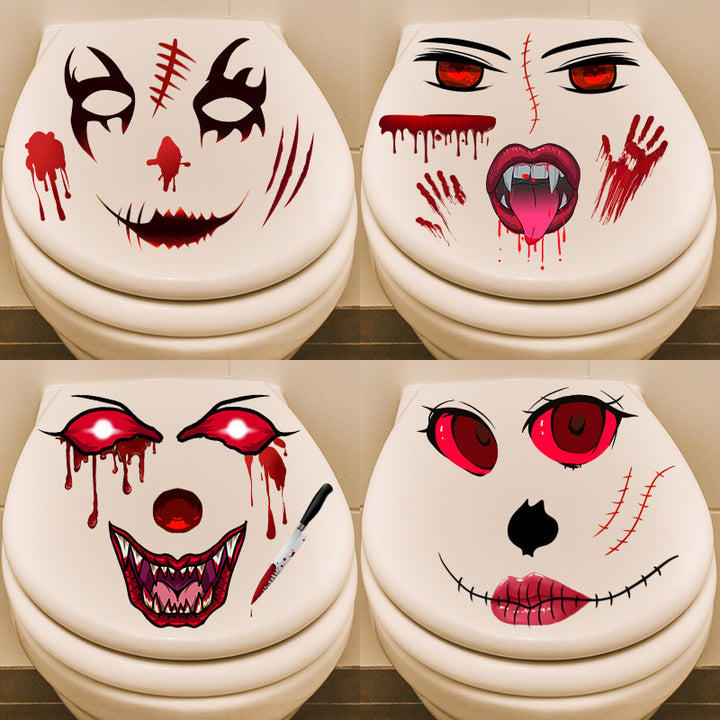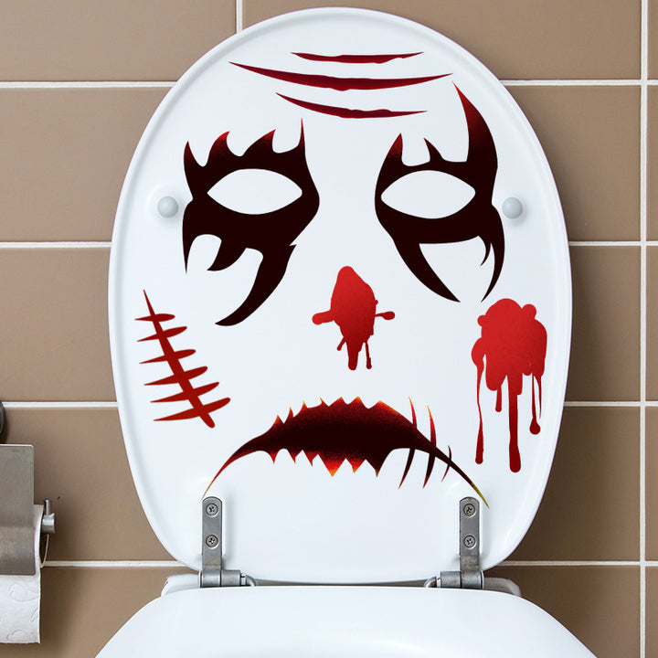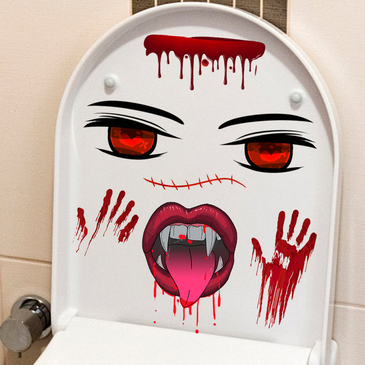 Halloween horror face sticker prank toilet sticker blood handprint self-adhesive toilet toile...
