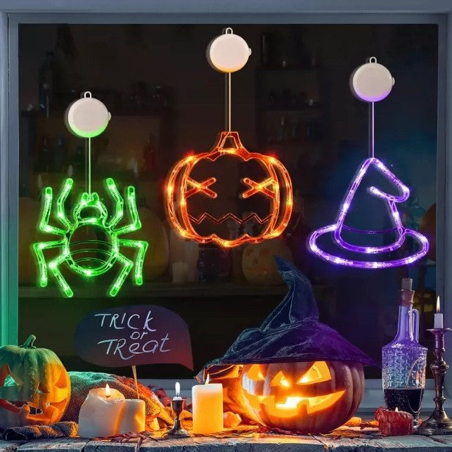 Halloween Lights Holiday Party Decoration Ghost Lights Sucker Pumpkin Lights String Hanging Lights Spider Web LED Sucker Lights