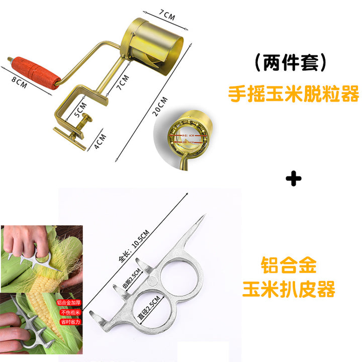 Hand corn thresher, Aluminum alloy corn husk tool, [Full set of peeling and threshing] Corn thresher + peeling device |