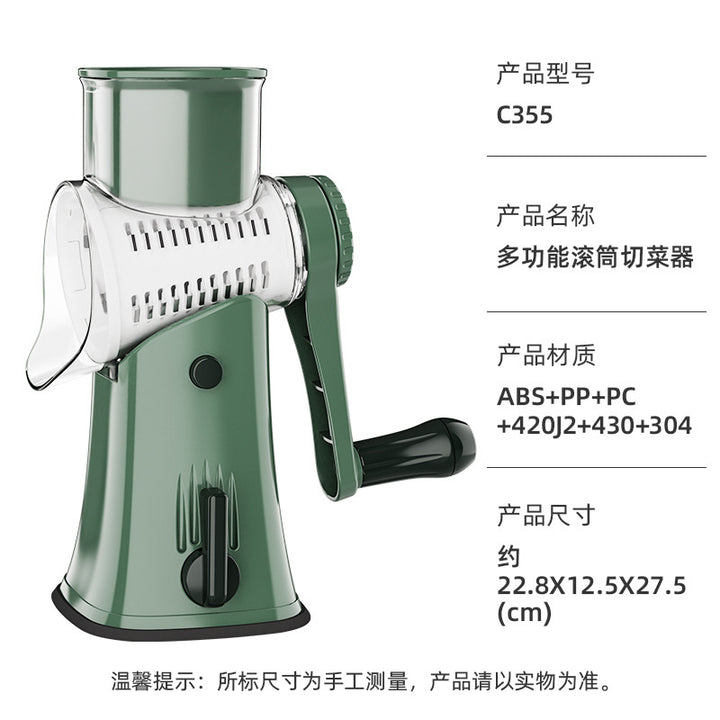 Hand-cranked vegetable cutting tool, rotary roller vegetable cutter, kitchen shredding and slicing grinding powder three-in-one wire planer