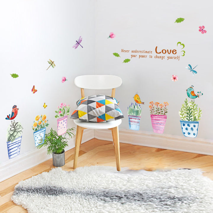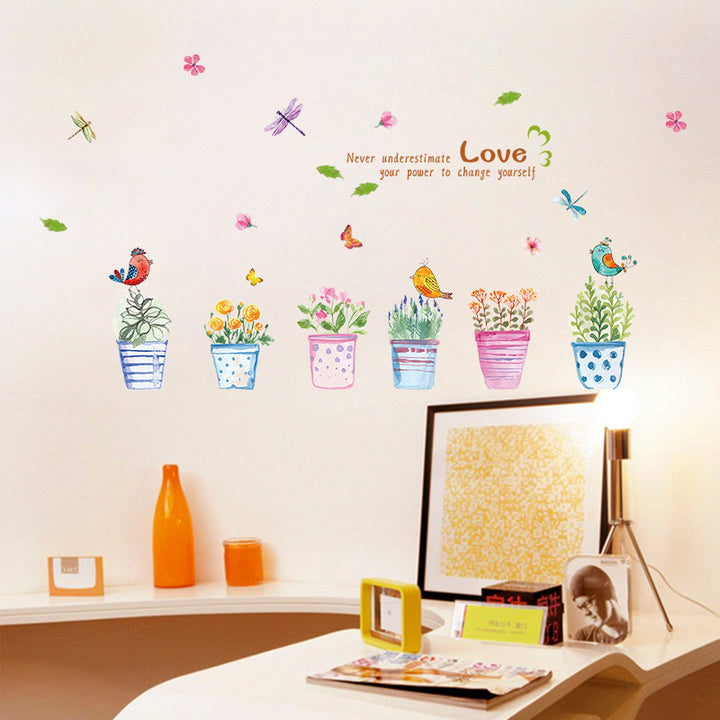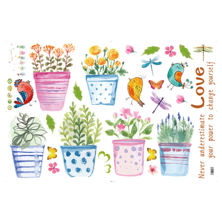 Hand painted potted wall sticker, bedroom living room TV sofa background decoration removable self-adhesive sticker XL8169